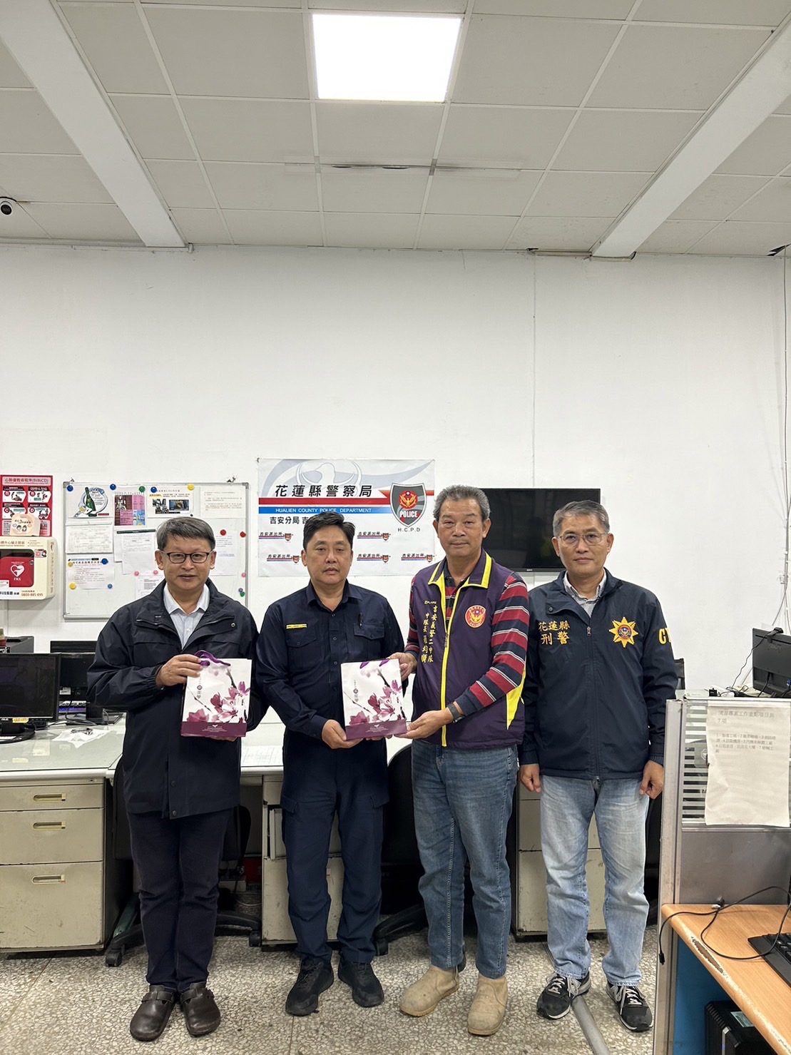 吉安義警第二中隊為感謝吉安警分局吉安派出所員警偵破黃姓車手詐欺案之辛勞特頒發破案茶,義警二中隊顧問團主席李盟德因另有公事,於昨(5)日委託中隊長羅均順頒獎,感謝警察同仁對維護治安工作的付出與優良傑出表現。員警積極維護地方治安、交通及為民服務工作不遺餘力,李主任表達肯定與嘉勉之意,希望藉由破案茶的頒發,達到適時鼓舞員警士氣的目的。