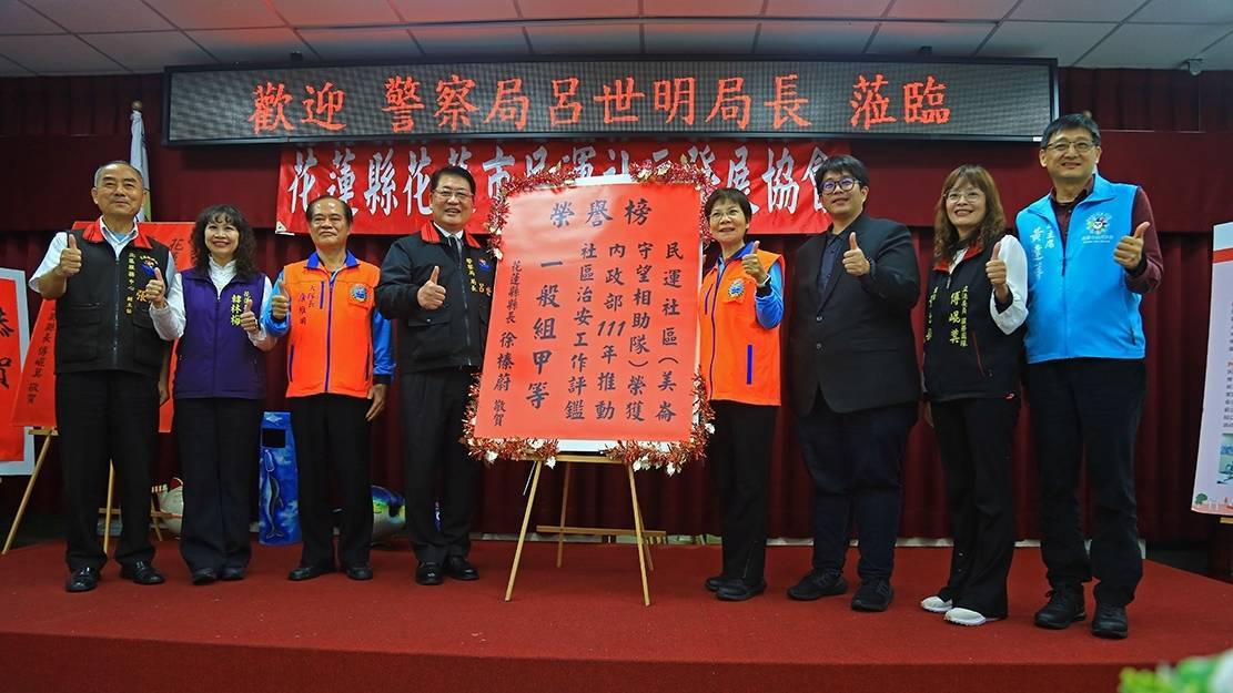 內政部辦理全國111年「推動社區治安工作評鑑」,花蓮縣民運社區(美崙守望相助隊)及宜昌社區(南宜昌守望相助隊)及均榮獲一般組「甲等」,警察局局長呂世明代表縣長於本(112)年12月5日晚間親赴各績優社區守望相助隊表揚,並轉頒內政部獎牌、獎金及張貼紅榜,慰勉獲獎守望相助隊平日的辛勞與付出。
