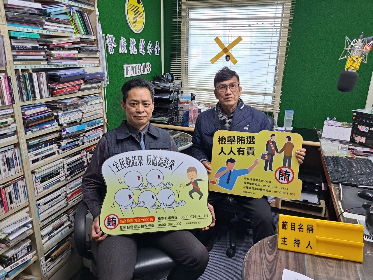 花蓮縣警察局局長呂世明表示:防詐工作全年不打烊,要把防詐資訊拓展至各層面、各群眾,讓民眾不斷接收新的防詐資訊,徹底認識詐騙,避免讓詐騙集團有機可乘,更要把握「一聽、二掛、三查證」原則,接到陌生來電或訊息請務必保持冷靜,再透過正規管道詢問,或撥打165反詐騙專線請求協助,相信必能減少被詐騙案件發生;另外,明年一月十三日第十六任總統、副總統及第十一屆立法委員選舉將近,為了鼓勵全民共同參與,強化查察賄選的效果,向民眾加強宣導,期望建立全民反賄意識,一同淨化選舉風氣,檢舉選舉不法行為,更有機會獲得高額獎金。