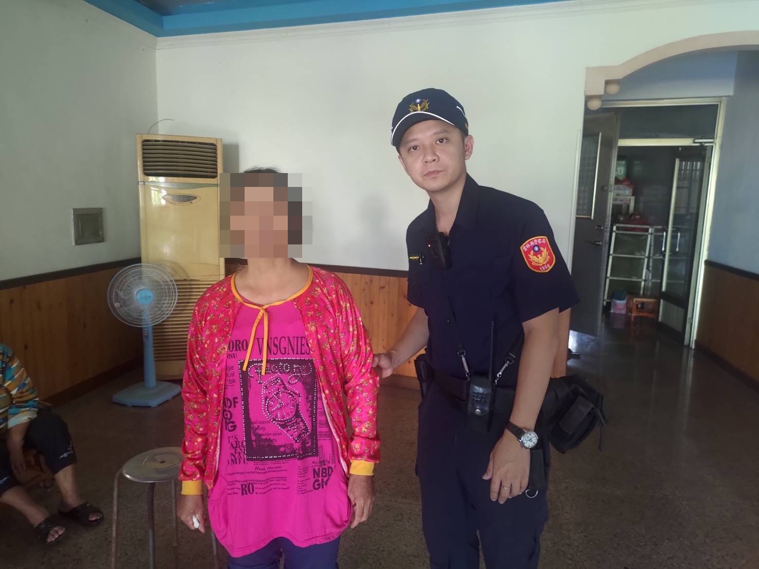 因老婦人堅持要自己騎車回家不願就醫,員警擔心婦人勉強騎車可能發生危險,安撫婦人情緒並表示會載其平安返家,老婦人才不再堅持要自己騎車返家。警方透過婦人提供的姓名查詢系統資料後,查出老婦人之住家可能位於四合村,便先將老婦人載返四合村,老婦人看到熟悉的景象,終於想起住家位置,最終順利平安回到家中,交由家人照顧,婦人及其家人均相當感謝警方的協助。
