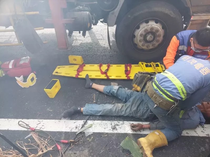 台電公司台南鹽水進行汰換變壓器傳觸電,1名工人OHCA送醫急救恢復心跳。圖/民眾提供