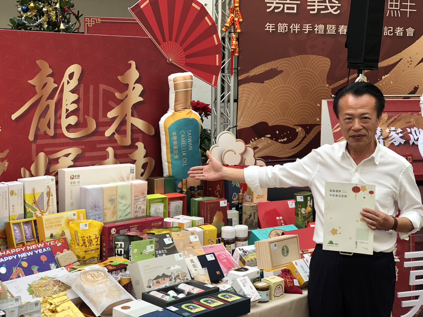 喜迎新春、龍來運轉,為向民眾行銷推廣嘉義縣優質的農特產品,嘉義縣政府今(3)日特別舉辦嘉義優鮮年節伴手禮暨春聯發布記者會,活動中除邀請書法大師黃枝文親自揮毫,更同步宣布全家好賣+電商平台新春特輯活動專區開跑,並為即將於月底舉行的嘉有好市集年貨大街活動暖身。此外,為了進一步擴大宣傳,還特別推出嘉義優鮮年節型錄,並發送至各大工業區,歡迎企業支持在地、響應採購,期許透過多元行銷模式推廣嘉義優鮮,滿足消費者的購物需求,共同迎接豐盛的龍年。