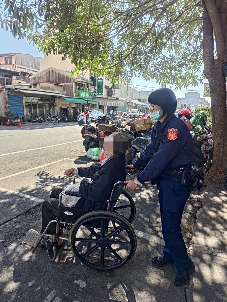 北港派出所警員李宇凡、李竑毅到場後,這位獨自推著輪椅的老翁已由熱心民眾協助引導至路旁安全處。經警與老翁言語互動下發現其言語表達有障礙,溝通不易,一時間無法確認老翁身分及住址,遂將老翁載返所休息。