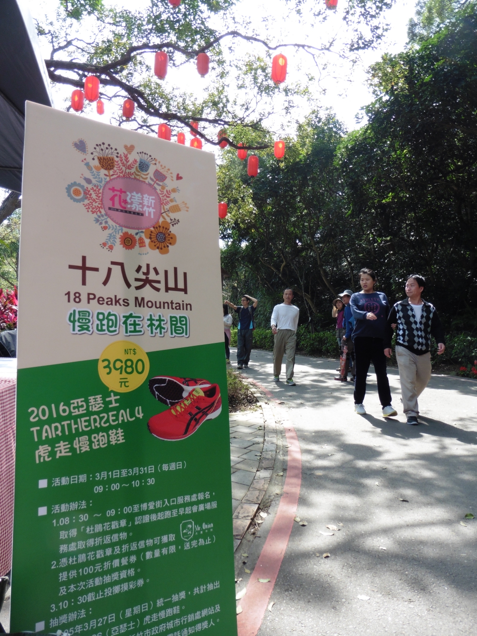 花漾新竹-2016新竹市賞花季系列活動來到十八尖山,象徵春天到來的三月份「十八尖山賞花月」,首場慢跑活動將於六日上午九時登場,邀請民眾在百花盛開的季節,每週日上午參加「慢跑在林間」,上山享受芬多精,還有機會抽中亞瑟士2016新款「虎走」慢跑鞋(四雙)