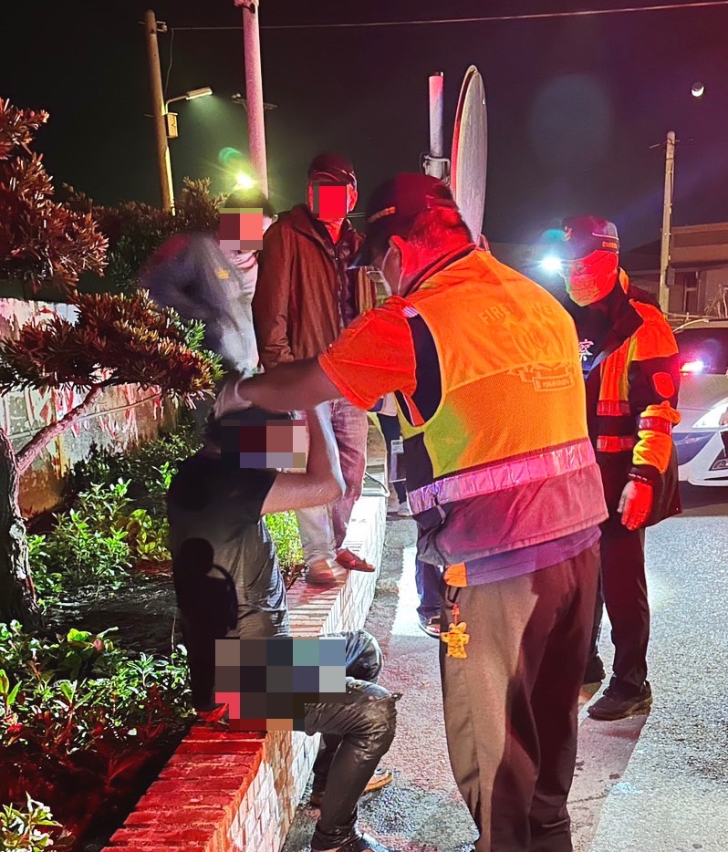 據了解,王姓民眾疑因感情狀況不佳,酒後跑到飛沙大排水溝意圖跳水尋短。由於情況緊急,蔡副所長率警員游岳翰立即趕赴現場,先以齊眉棍固定王民身體以免遭河水沖走,後向附近廟宇借用長梯,始將該名落水民眾救上岸來。