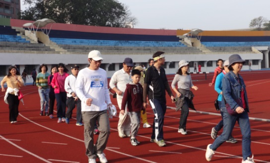 新竹市衛生局表示,為推廣市民規律運動,提醒民眾注重自己的健康,維持適當的體重,於五日早上在新竹市體育場辦理每日一萬步 健康好運來健走活動,參加民眾踴躍,最大年紀從八十五歲到最小年紀一歲半,為讓民眾能有正確的健走知識,避免運動傷害,衛生局特別邀請浪斯邦泥運動教室詹鈞智健身老師教導市民暖身活動,及示範正確的健走方式,讓民眾在平常利用休閒的時間就可以在住家附近公園或社區健走步道,進行健走運動。