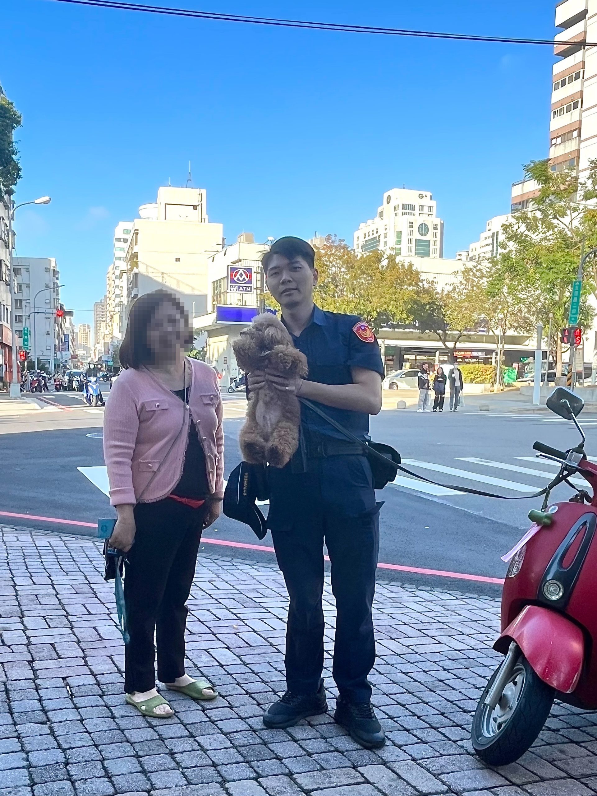 第二分局永興派出所警員林宗和於113年01月22日14時擔服備勤勤務時,55歲的連姓女子焦急地跑進派出所求助,請員警幫忙找她的狗兒子「肉粽」,連女眼眶泛淚的說:「肉粽就像我的兒子一樣,我已經找遍附近,都找不到,只好來拜託警察。」原來連女中午騎車出門買午餐時,沒注意到家門沒鎖好,狗狗「肉粽」趁隙獨自跑出門,直到連女約20分鐘後返家時才發現狗狗不見了,急忙在家附近找尋均未果,只好前來派出所求助,恰巧林員也是愛狗人士,養狗將近十年了,對狗狗的習性也十分了解,因此先安慰報案人「先不用擔心,狗狗通常不會跑離家太遠。」林員認為寵物犬移動範圍通常不會太遠,且很有可能是跟在主人後面就跑出門了,因此直接調閱連女騎車路線的監視器畫面,果然短短5分鐘不到,就發現連女騎車行經北區德化街與榮華街口時,狗狗「肉粽」就跟在主人後面追,還好遇上好心路人發現狗狗在路上亂跑,幫忙先帶狗狗到附近店家休息。