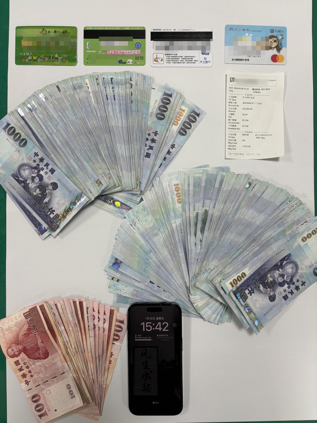 經員警調查,顏嫌係受綽號「alanchen」之人指揮擔任車手,現場查扣金融卡4張、提領明細1張、手機1支、現金新臺幣22萬7,800元等犯罪證物,顏嫌雖年紀輕輕,但在員警盤查時態度仍相當冷靜,員警詢問提領之多張金融卡是誰的?顏嫌很自然的回應是「阿嬤的,阿嬤叫我來領錢的」或是「這張是阿公的」,長輩這麼缺錢並要同時領錢,讓員警識破這根本是鬼扯。