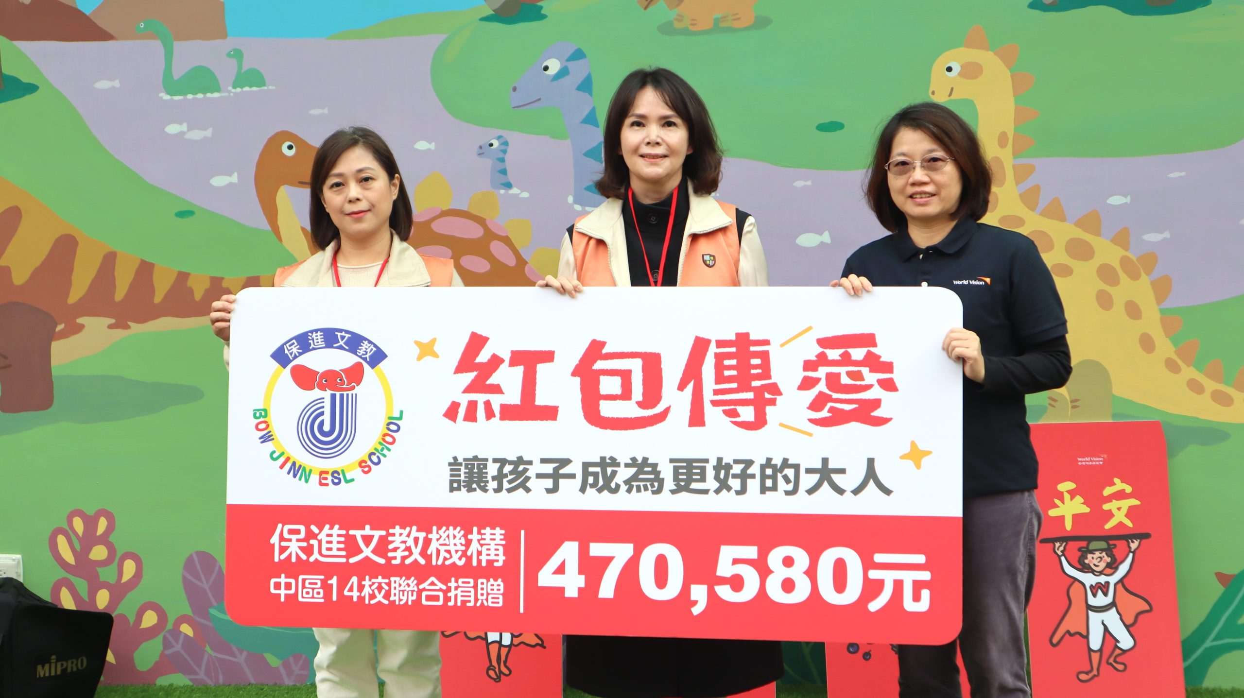 保進文教機構看見中部地區經濟弱勢家庭兒童的需要,聯合中部14所幼兒園,在年節前響應台灣世界展望會「紅包傳愛」活動,更於幼兒園進行「愛」及「分享」為題的生命教育課程,獲得園方及家長熱烈迴響募得47萬多元,募得款項將全數投入「紅包傳愛」,與台灣世界展望會一起為弱勢孩童及其家庭帶來新一年的祝福。