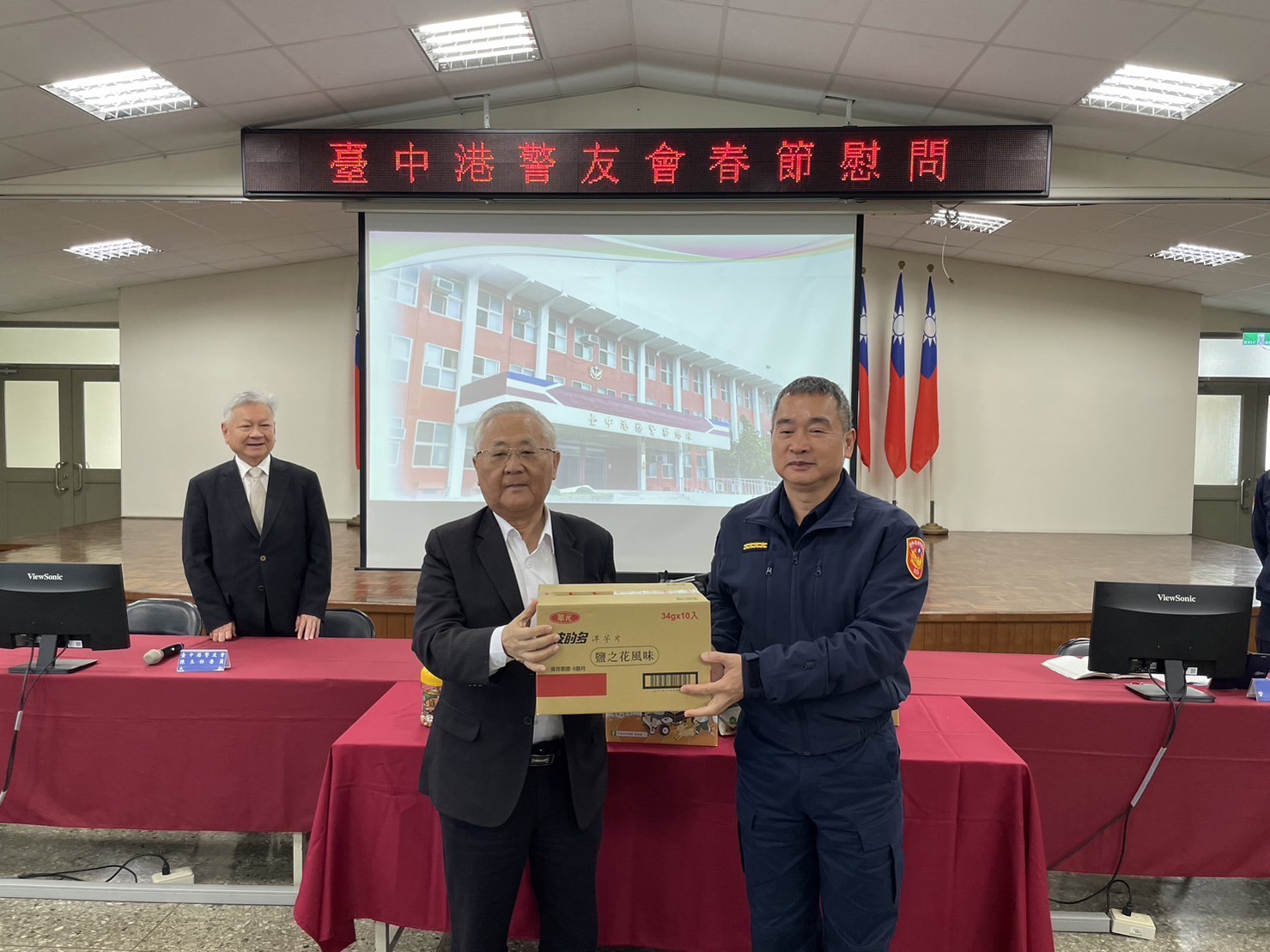 臺中港務警察總隊蔡燕明總隊長感謝臺中港警友會全力支持警政工作,提供總隊同仁協助,並協助推動各項警政宣導工作,扮演總隊同仁與港區從業人員間的橋樑,成為總隊最強的後盾,總隊同仁將感念警友會支持與美意,全力執行春節安維工作。