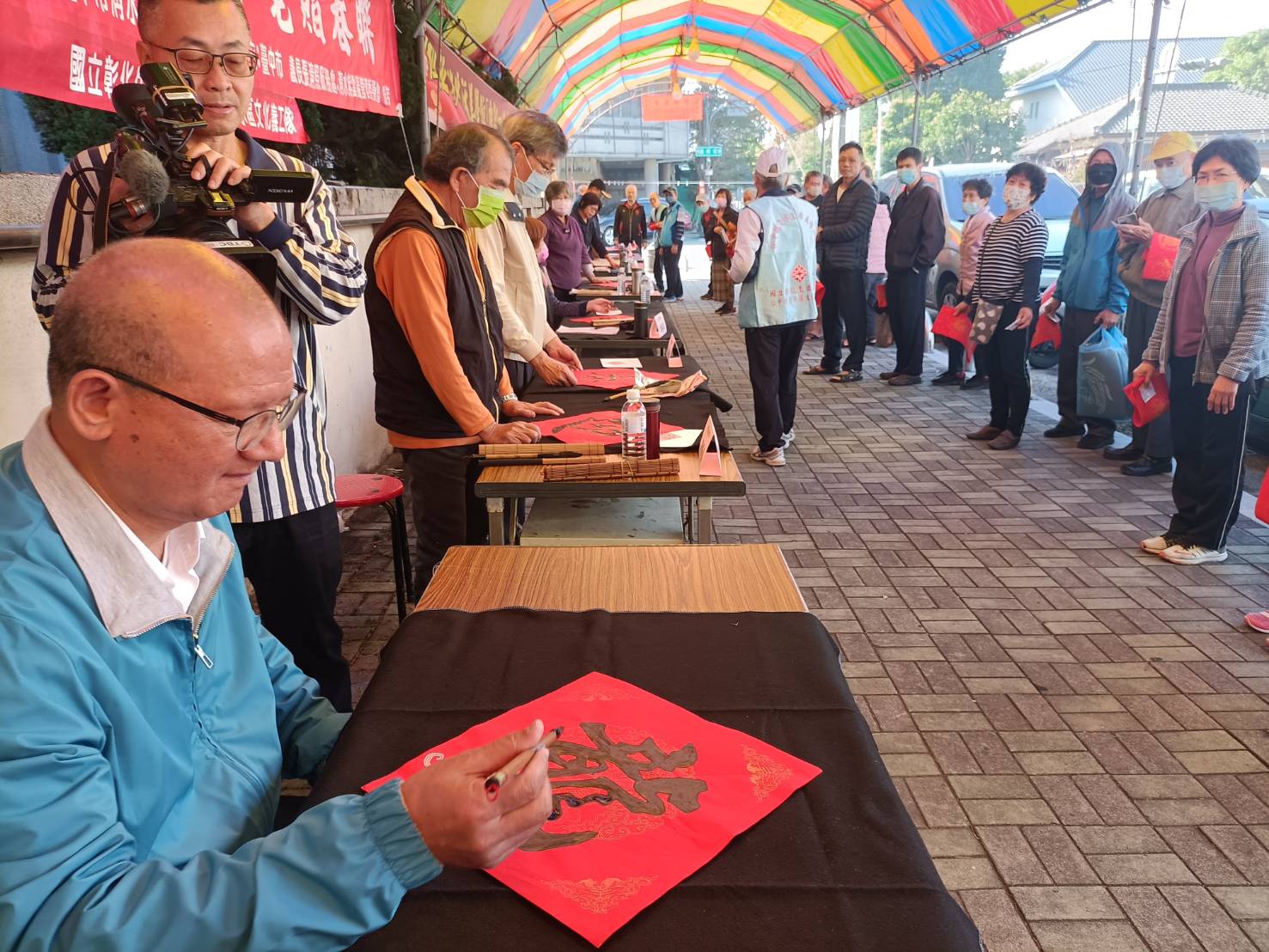 臺中市議長張清照每年在農曆春節前,都邀請書法老師現場揮毫寫春聯,免費贈送給鄉親添喜氣,也傳承傳統文化;今天在1月31日舉辦,大批鄉親排隊索取,10位老師現場揮筆不停,張議長也親手寫下大大的「龍」,預祝龍年大家龍騰虎躍、大吉大利。