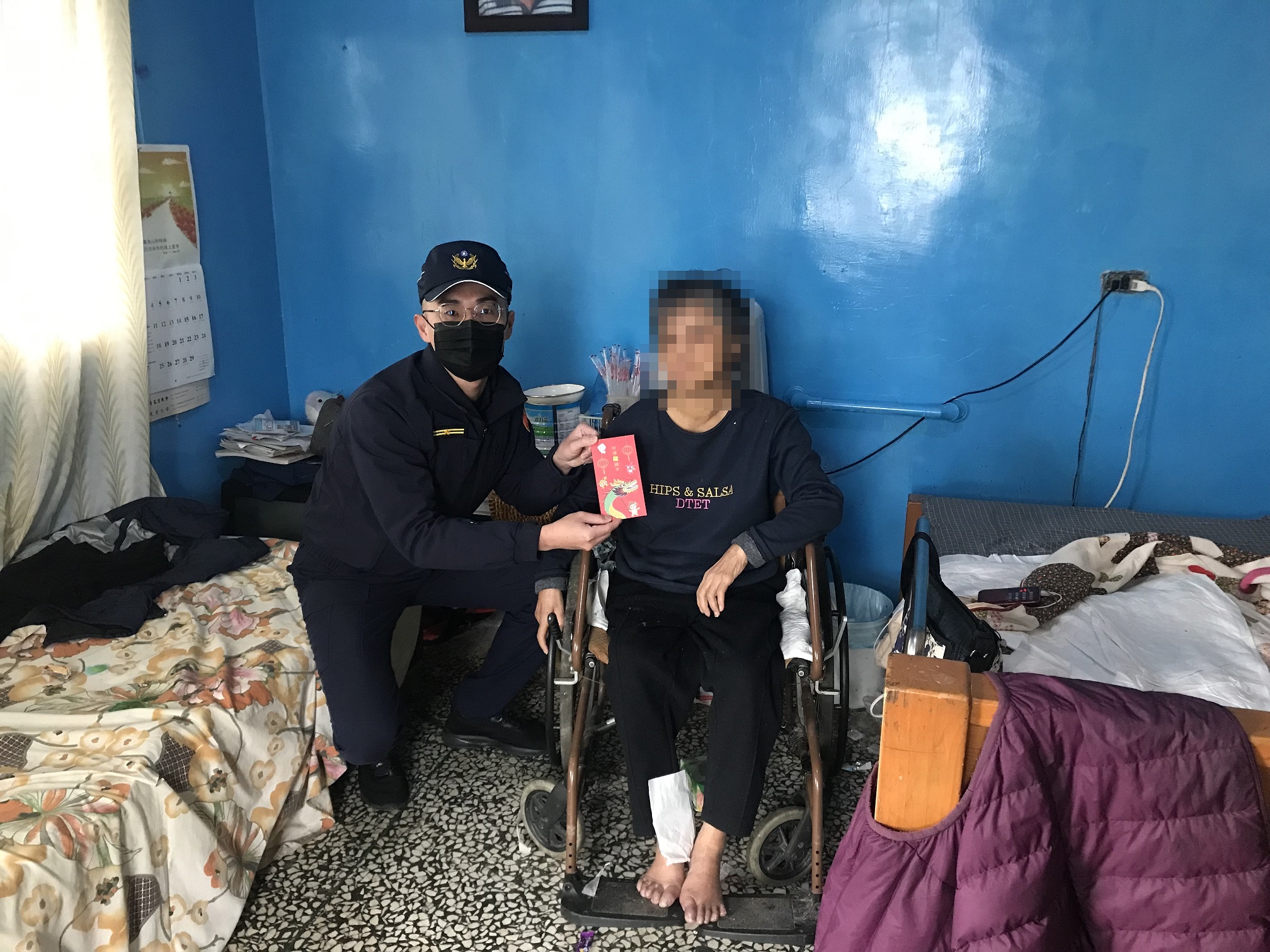 適逢春節期間,柯、黃2位波麗士主動前往贈與紅包,盡已棉薄之力盼其能過個好年,陳民表示因母親突然重病,生活突逢驟變,此時能獲得員警幫助,十分感動。