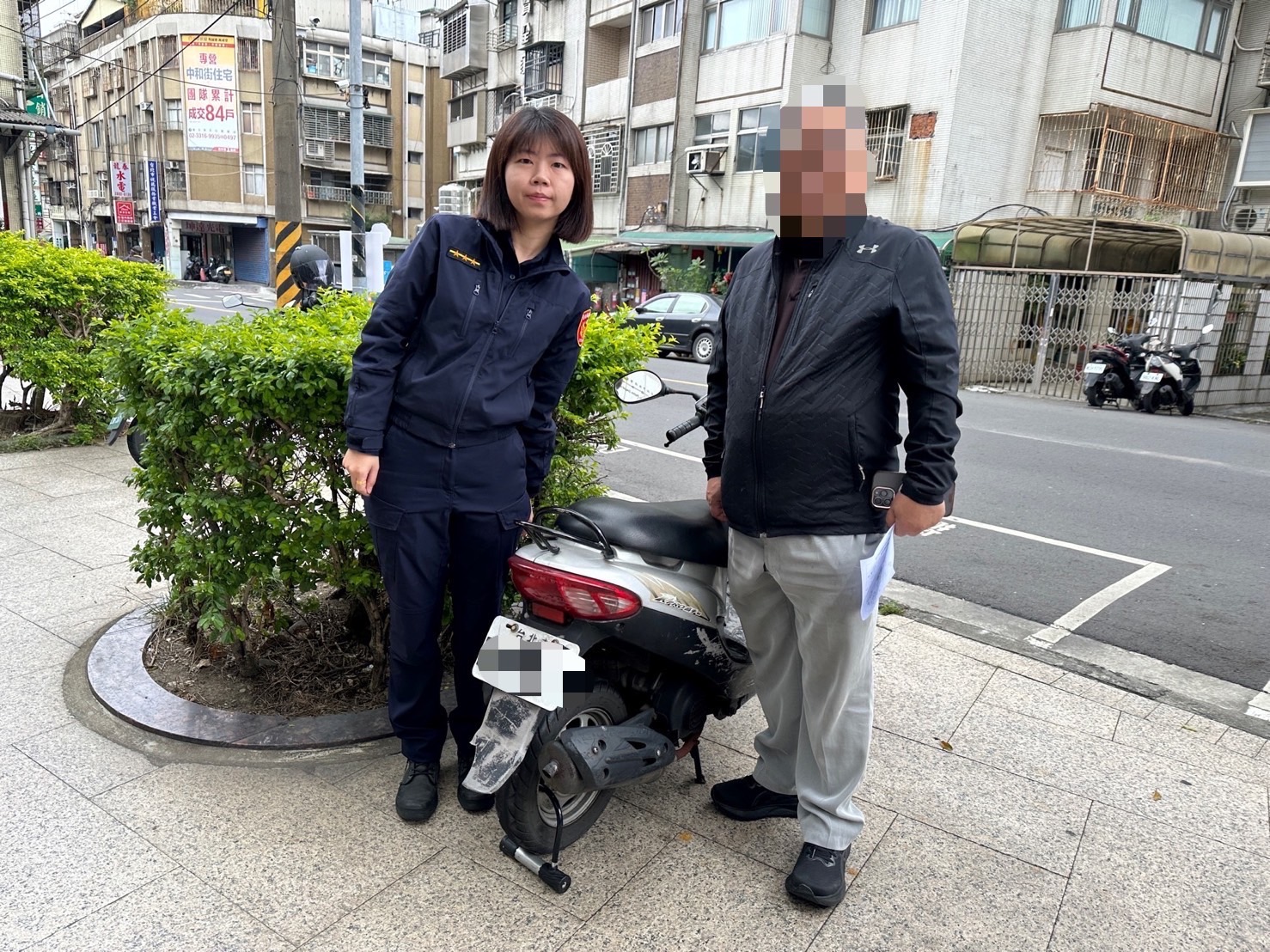 車主兒子陳姓男子稱,該機車已於去(112)年8月24日報案登記為失竊,由於母親已雙目失明、無法騎車,卻不停收到罰單通知,不勝其擾,多次返回該車最後停放處附近都找不到,方驚覺可能遭竊,故至住家(大安區)鄰近的派出所報案。林員執勤時,運用警政系統,發現路邊停放之1台普重機車顯示為失竊,並詢問附近商家有無印象見過竊用該車之人,經查該車近期已無使用跡象、停放已久,便通知陳男領回。陳男對於警方積極認真態度讚譽有加,表示接獲電話得知尋回機車時非常驚訝,原認為時隔已久、希望渺茫,沒想到能在開春就順利尋回,對於警方執勤認真之精神也相當讚許。