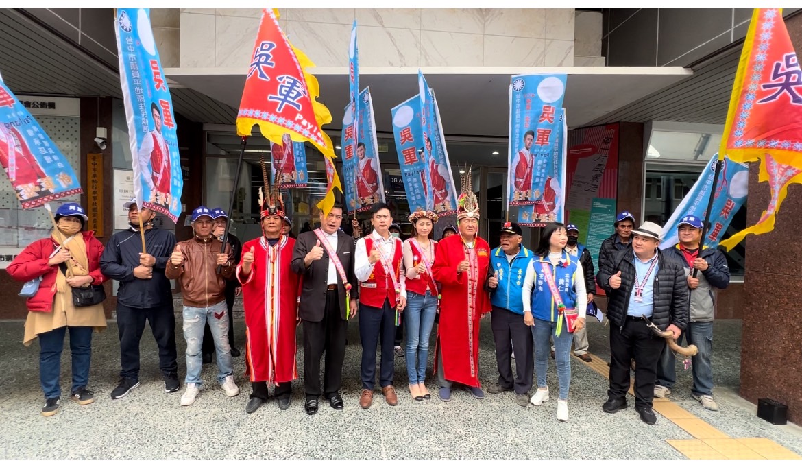 立法委員黃仁今日親自陪同登記完成,吳軍正式成為候選人,軍將合擊,捍衛原民權益,我們都是來自各方的原住民,台中已我們第二故鄉,為下一代選出最適合的民意代表,是我們這一代的責任!建構城市部落、安居樂業台中。