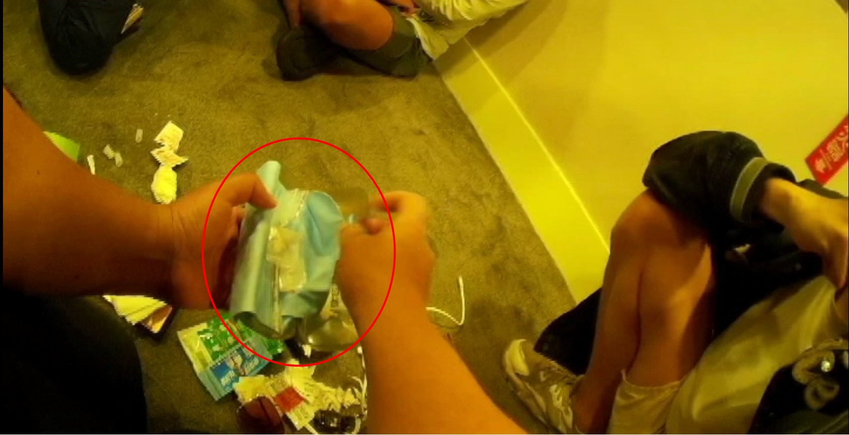 蘇男面對員警的盤查,手腳因過於緊張不自主發抖,又說要陪長輩去掃墓,讓員警啼笑皆非,員警進一步深入查處後,在蘇男的包包裡發現了一個眼鏡盒,眼鏡盒內擦拭布中包裹著安非他命及針頭等違禁品,原來蘇男與38歲的高男二人是網友,相約於旅館房間內一同施用毒品,疑似聽到員警在訪查其他房間的旅客,倉皇的想離開旅館,以躲避員警的查訪,未料才一步出房門欲搭電梯之際,就被眼尖的員警攔下盤查。