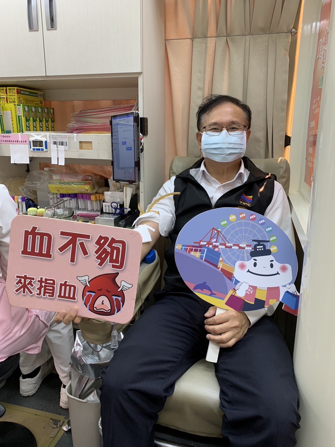 2024開春,全省捐血中心嚴重大血荒,為響應捐血中心血庫告急的窘境,臺中港務分公司陳榮聰總經理號召捐血風氣旺盛的中港人,愛心不落人後,邀請港區CIQS、公務機關、航商、投資廠商及港務公司同仁,共同響應『捐血一袋、救人一命』的博愛精神,於113年3月8日上午9時30分至下午4時在海港大樓前廣場辦理「港務傳愛」公益愛心捐血活動,該分公司港務長魏福添等人率先挽袖捐血,一起響應捐血活動,希望將愛心傳送給需要幫助的人。
