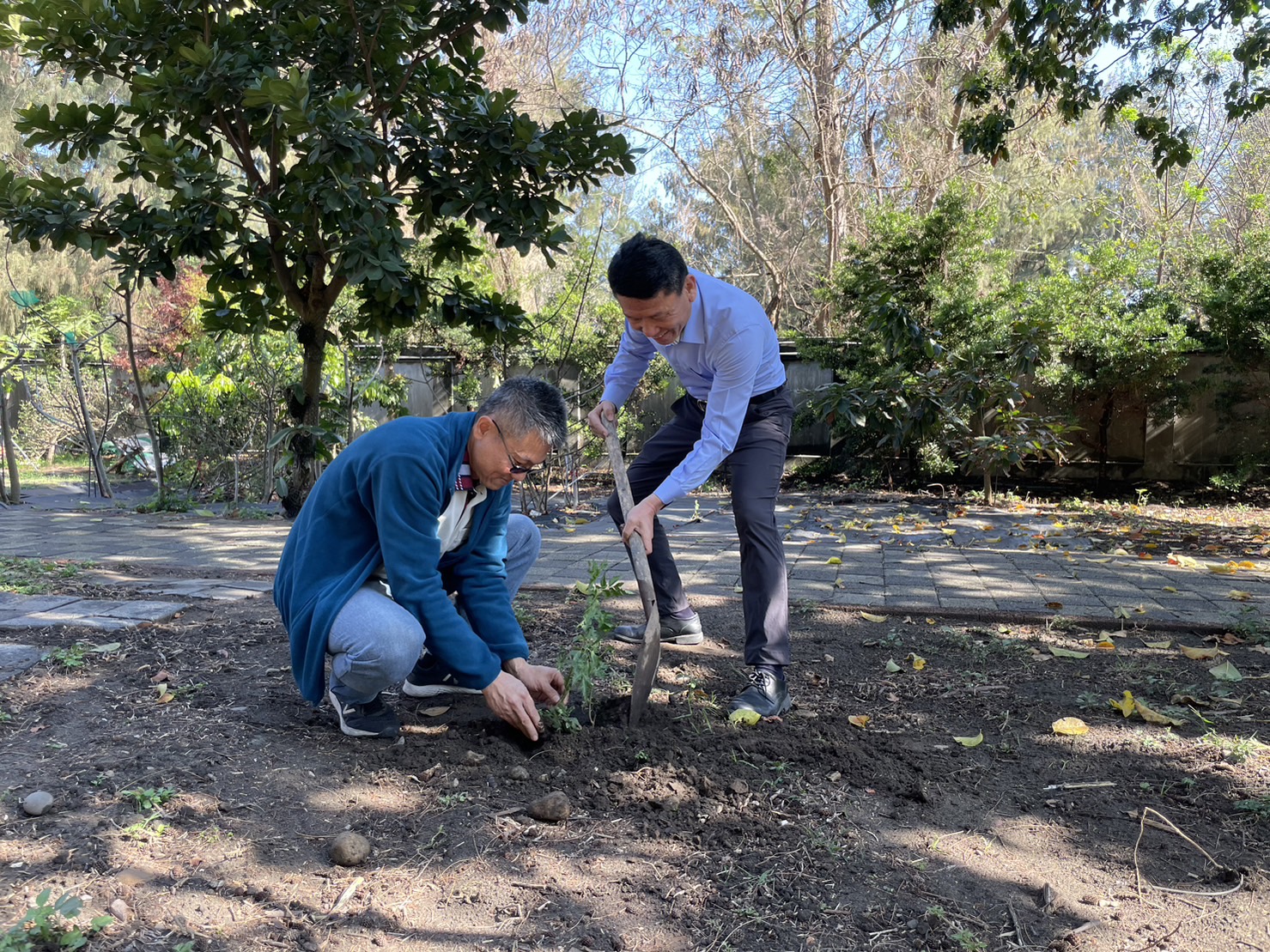 植樹護地球人人有責,臺中港務警察總隊本日由蔡燕明總隊長帶領同仁親手種下杜鵑、苦苓等樹苗,植樹護樹、增加碳匯,盡心推動環境綠化工作;臺中港務分公司在環境永續發展及善盡企業社會責任的承諾下,亦持續推動綠色港埠政策,協助本總隊將枯株移除,噴灑藥劑以防治病蟲害,共同努力守護地球、守護臺中港生態環境。