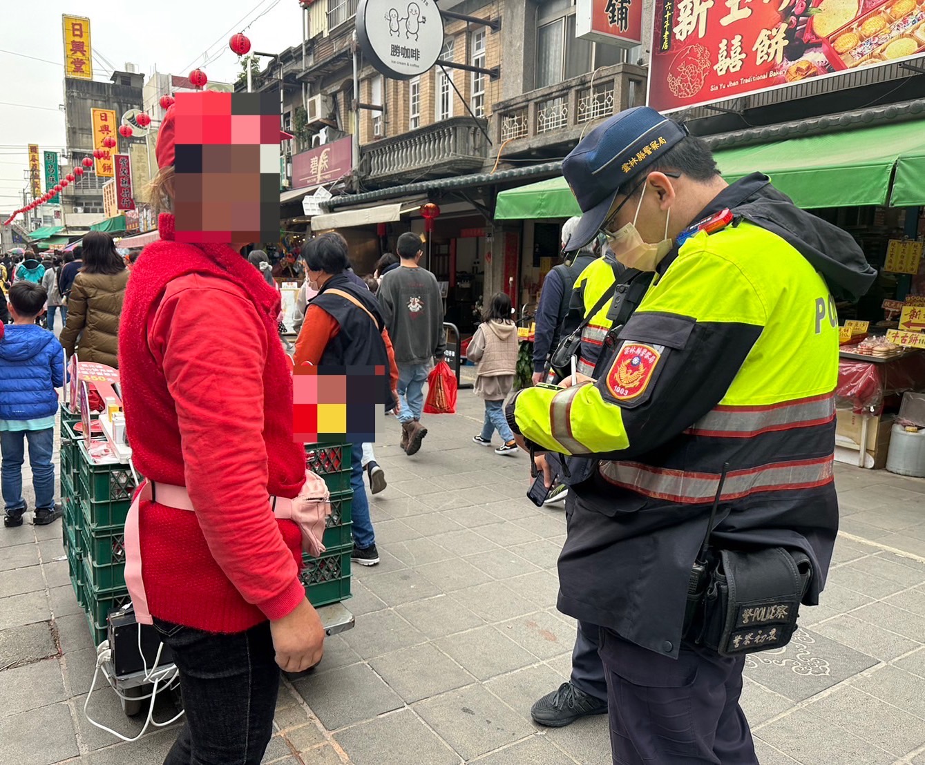 「三月迎媽祖」有白沙屯媽祖北港徒步進香、大甲媽祖遶境進香、北港媽祖遶境、南瑤宮媽祖潦溪割香……等,多采多姿的宗教文化特色,也為北港朝天宮帶來如織遊客,每逢假日更出現不少違規攤商搶商機。北港警分局16、17日連續兩天針對中山路周遭,私人擺設雜物占用道路及商家違規設攤部分,進行宣導及執法,以維護交通秩序及公共安全。