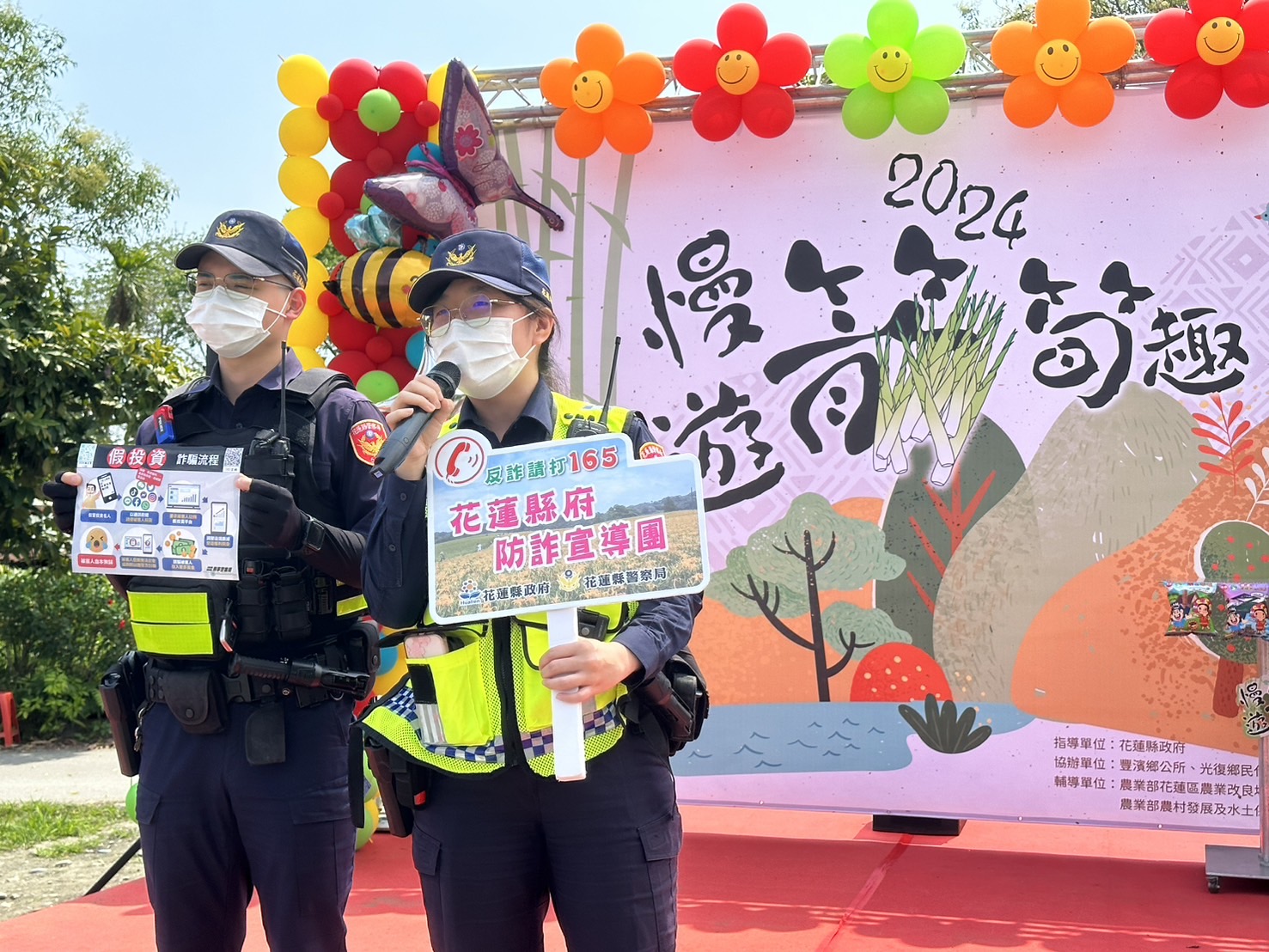 每年三月是花蓮縣光復鄉箭筍破土產出季節,光復鄉公所於本月17日在光復鄉馬太鞍祭祀廣場舉辦「2024漫遊箭筍趣」活動,預期吸引大量人潮前往朝聖,鳳林分局結合在地活動,前往進行反詐騙宣導活動,加強鄉親及遊客對詐騙的識別。