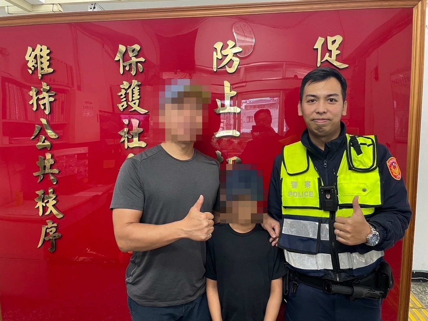 臺北市政府警察局北投分局關渡派出所警員黃泰志日前於所內執勤時,一名男子阿德(化名)神色慌張至派出所報案,渠表示,兒子城城(化名,9歲)在北投區關渡宮旁騎自行車的過程中不慎走散,請求警方協尋。