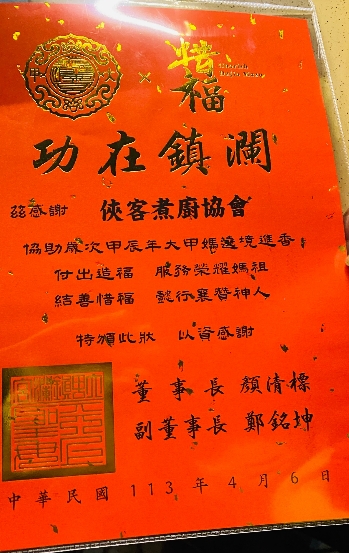 余理事長表示,感謝志工們的辛勞,還幫忙炒菜、打菜。免費供準備餐點、飲料結緣,讓香客們呷免驚、呷飽飽,才能維持更好體力繼續隨香,是我們對媽祖的熱情,也是三月瘋媽祖最美的風景。