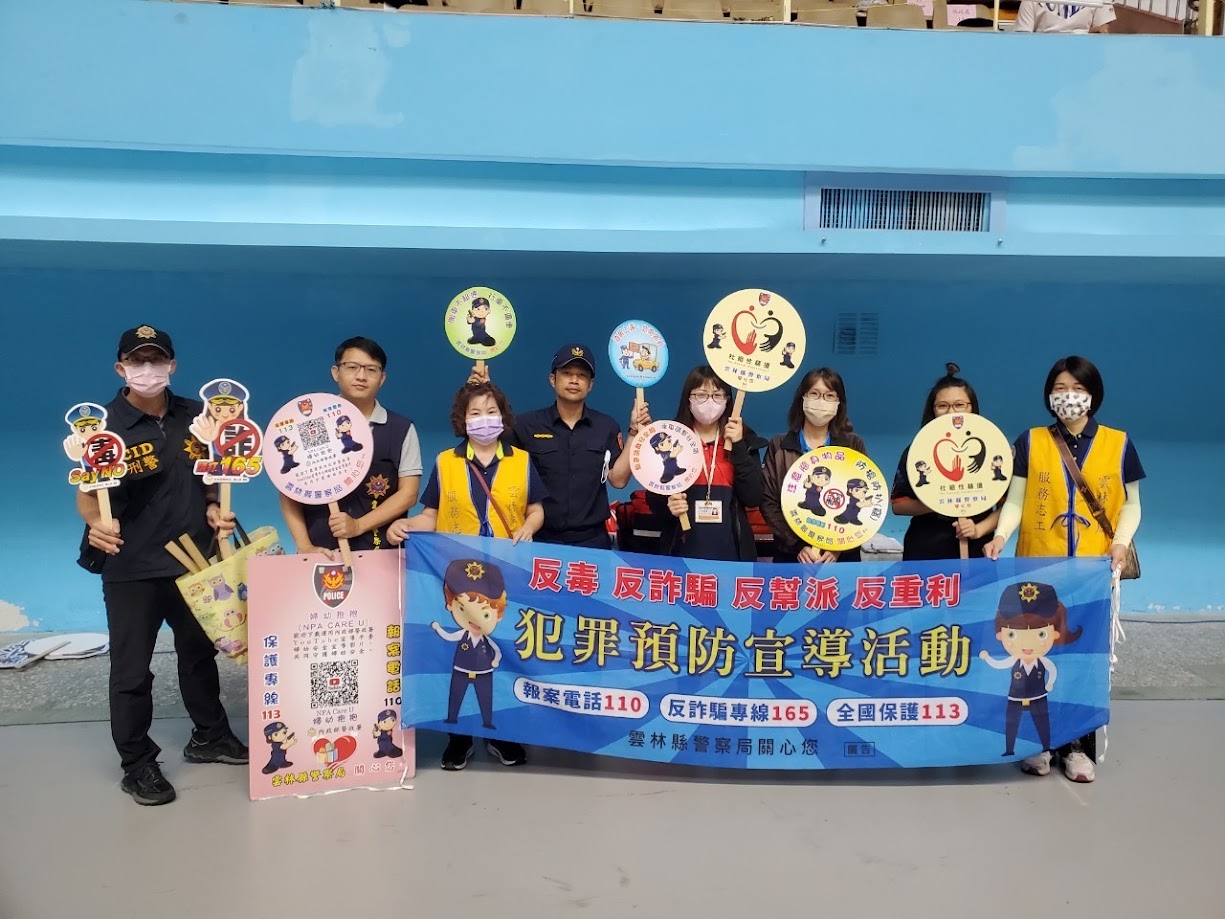雲林縣政府於4月9日在雲林縣立體育館舉辦「113年雲林縣政府及所屬機關『幸福雲林一加速前進』業務宣導趣味競賽」,雲林縣警察局由局長李建民率各科室主管參與活動,並出動可愛又吸睛的警察大頭娃娃活潑宣導,斗六分局也藉此機會由分局長黃念生率同仁組成宣導團前往宣導,並邀請縣長張麗善及與會縣府內各處室長官及員工,共同宣導交通安全、婦幼安全及防詐騙觀念,希望縣府員工在辦理公務之餘,亦可向民眾及週遭親友宣導相關知識,保護民眾生命、財產安全。