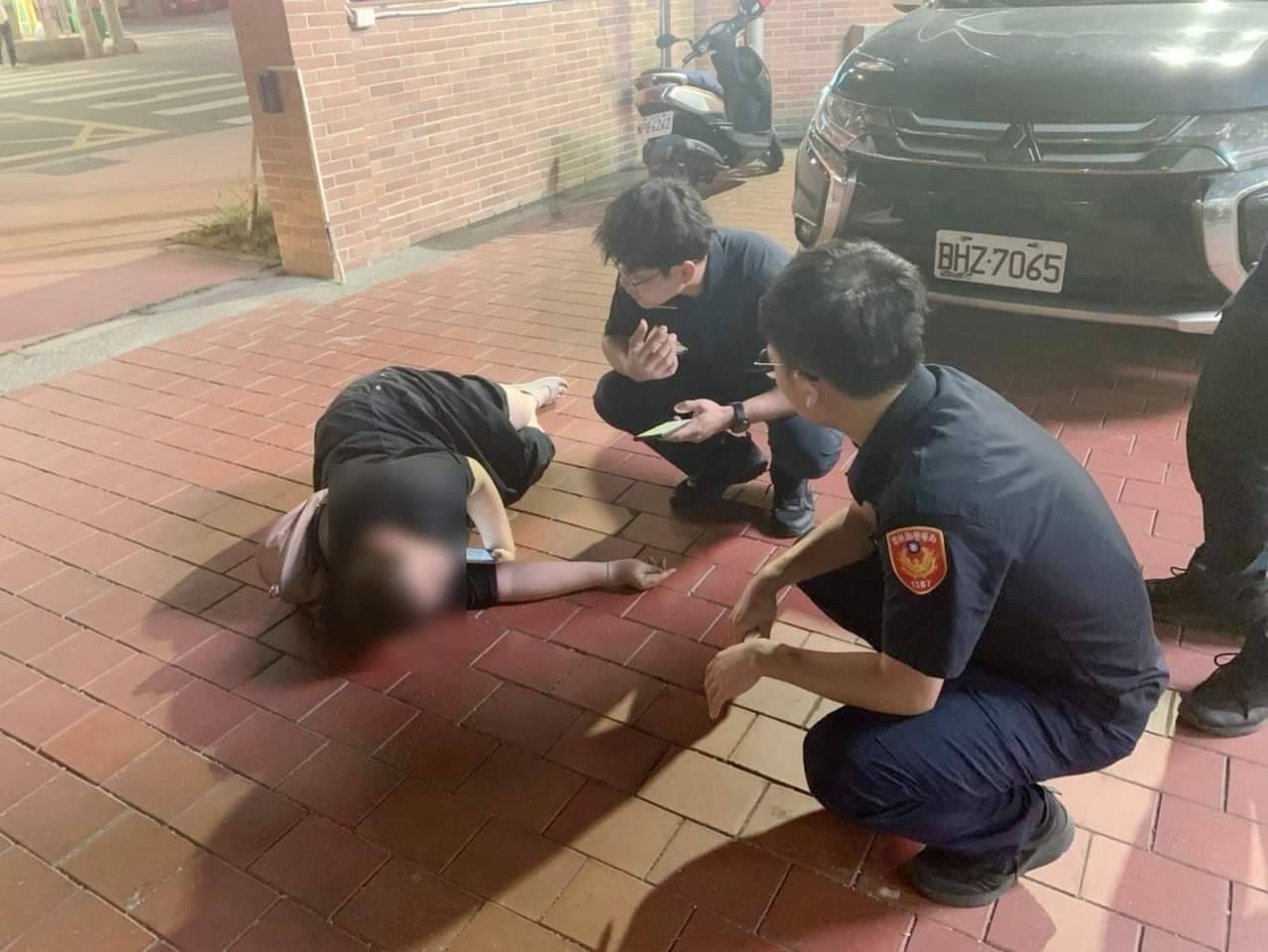 43歲的女子倒在地上表情痛苦的說:「我不舒服快救我!」員警立即通知救護車到場救人,警方引導女子舒緩情緒:「小姐妳在發抖,先慢慢深呼吸、調節呼吸,別怕救護車馬上來!」女子閉著雙眼調節呼吸,臉上的表情漸漸緩和不再糾結,員警協助救護車將女子送醫治療後無礙。