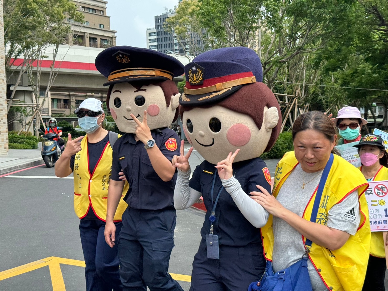 北投警分局宣導團隊,特派出超萌警察大頭娃娃及警察志工團們手持宣導牌面,將「交通安全」及「識詐」觀念,透過活動遊行沿線宣導,以擴大宣導之成效。