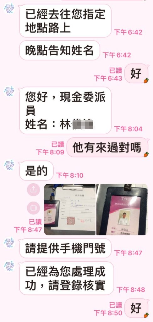 長平派出所員警受理後,得知詐騙集團仍使用話術試圖繼續詐騙邱女,要求邱女提領新台幣50萬元現金交付給外派專員,警方在邱女的配合之下埋伏於其住家,等待收款車手於約定時間到來,就在車手與邱女完成面交之際,埋伏警力一擁而上,將該名陳姓車手當場予以逮捕,全案警詢後依刑法詐欺罪移送臺灣雲林地方檢察署偵辦。