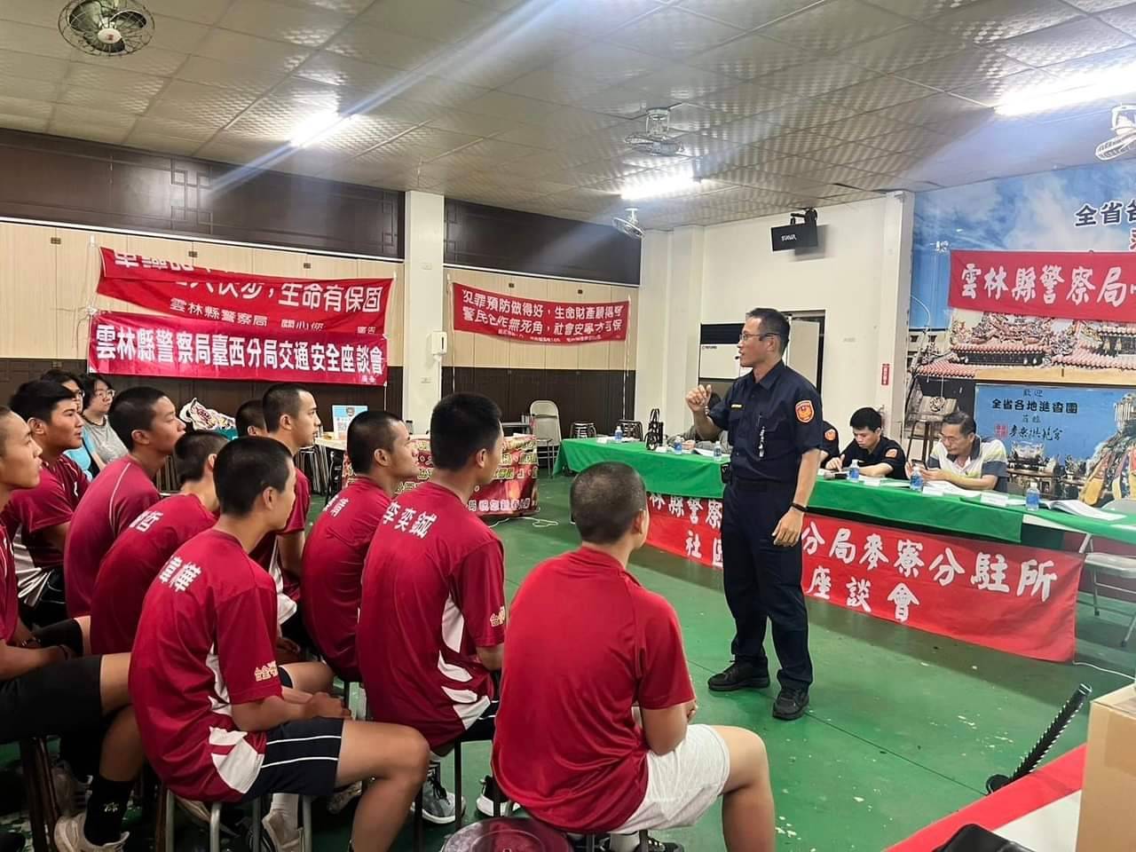 本次座談會由麥寮分駐所所長林家隆擔任主持人,本局利用與社區民眾近距離接觸宣導交通安全、婦幼安全及預防詐騙等,提高民眾的自保能力。現場有許多年輕人參與,第五組組長黃進德宣導相關交通知識,呼籲青年朋友,為維護用路安全,騎乘機車一定要戴安全帽,騎車不超速、喝酒不騎車不無照駕駛,行經行人穿越道時要禮讓行人,應遵守號誌行駛,共同為交通安全盡一份心力。