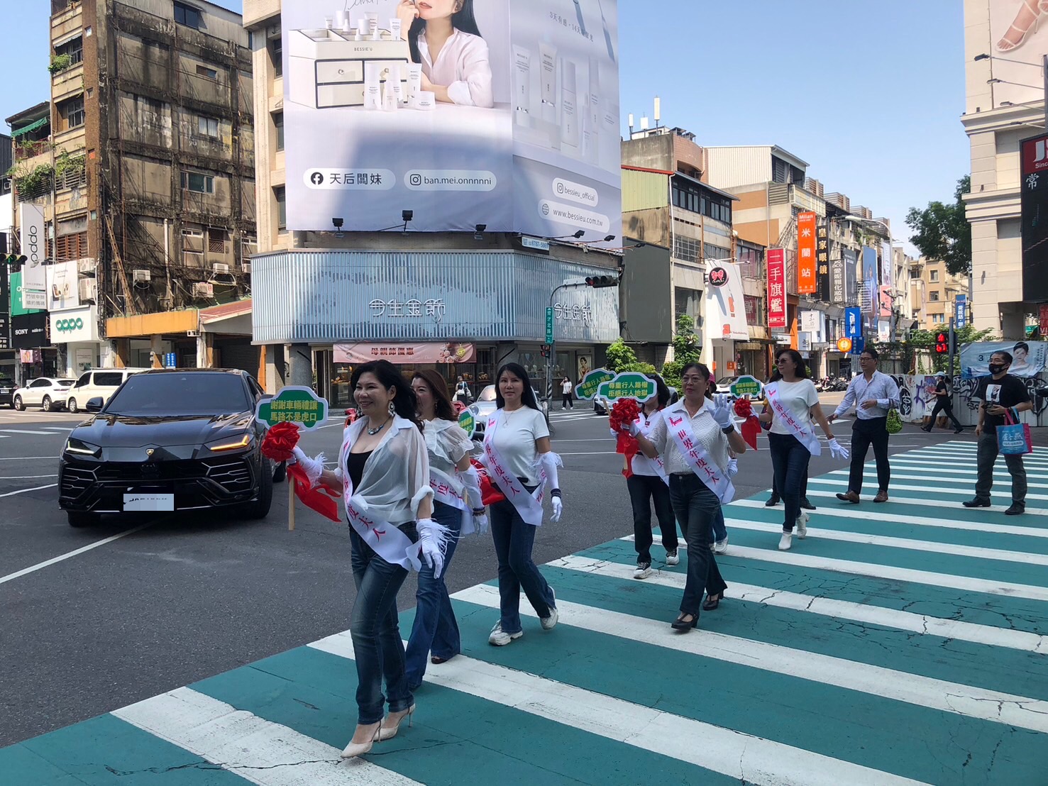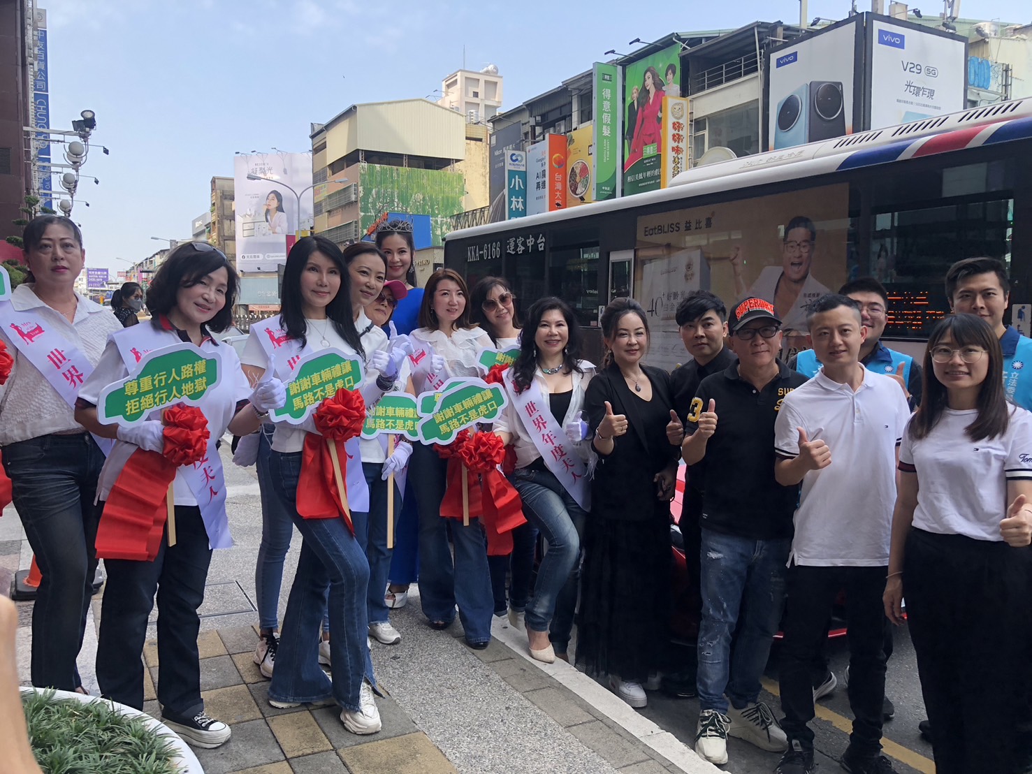 世界年度夫人選美總會長徐郁善表示,選美大會佳麗人人熱心公益,關心行人安全過馬路的路權,得到立法委員黃健豪的支持,力邀名氣響亮的馬卡龍超跑公益車隊,一起在中友百貨商圈公益宣傳,選美佳麗手持「尊重行人路權」「拒絕行人地獄」「謝謝車輛禮讓」「馬路不是虎口」的標語,提醒大家注意交通安全,尤其穿越道路更應該專心行走,車輛跟行人共同遵守交通規則,避免危險。
