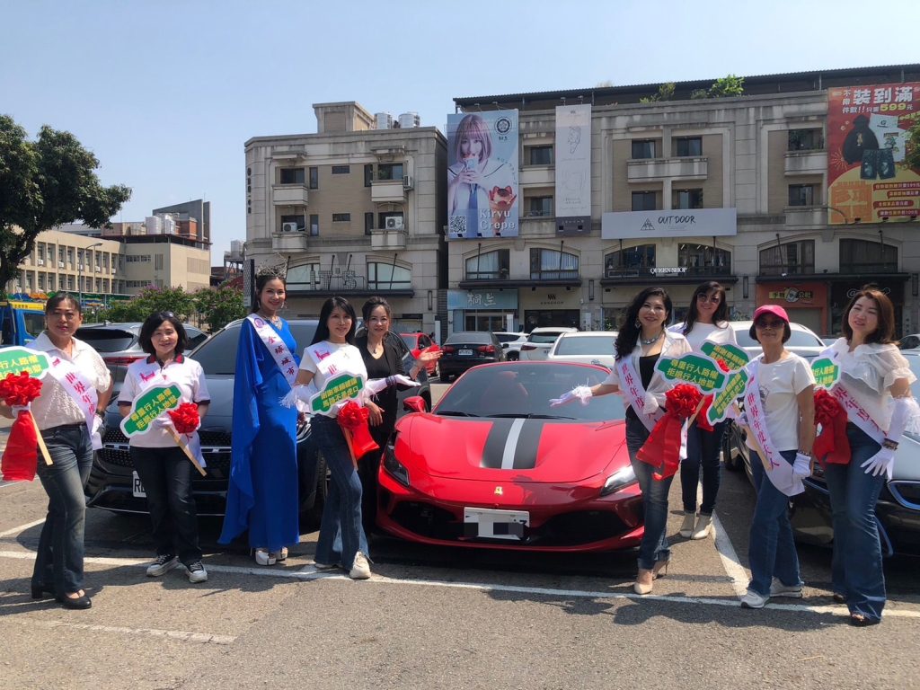 2024世界年度夫人選美大會入選總決選的二十多位佳麗,於5月2日邀請馬卡龍公益超跑車隊,並由中友百貨公司及美與健康身心靈協會贊助,在台中中友百貨,一中商圈等人潮眾多的行人穿越道,宣傳尊重行人路權公益活動,提醒車輛駕駛人,小心開車禮讓行人,共同洗刷馬路是行人地獄的惡名。