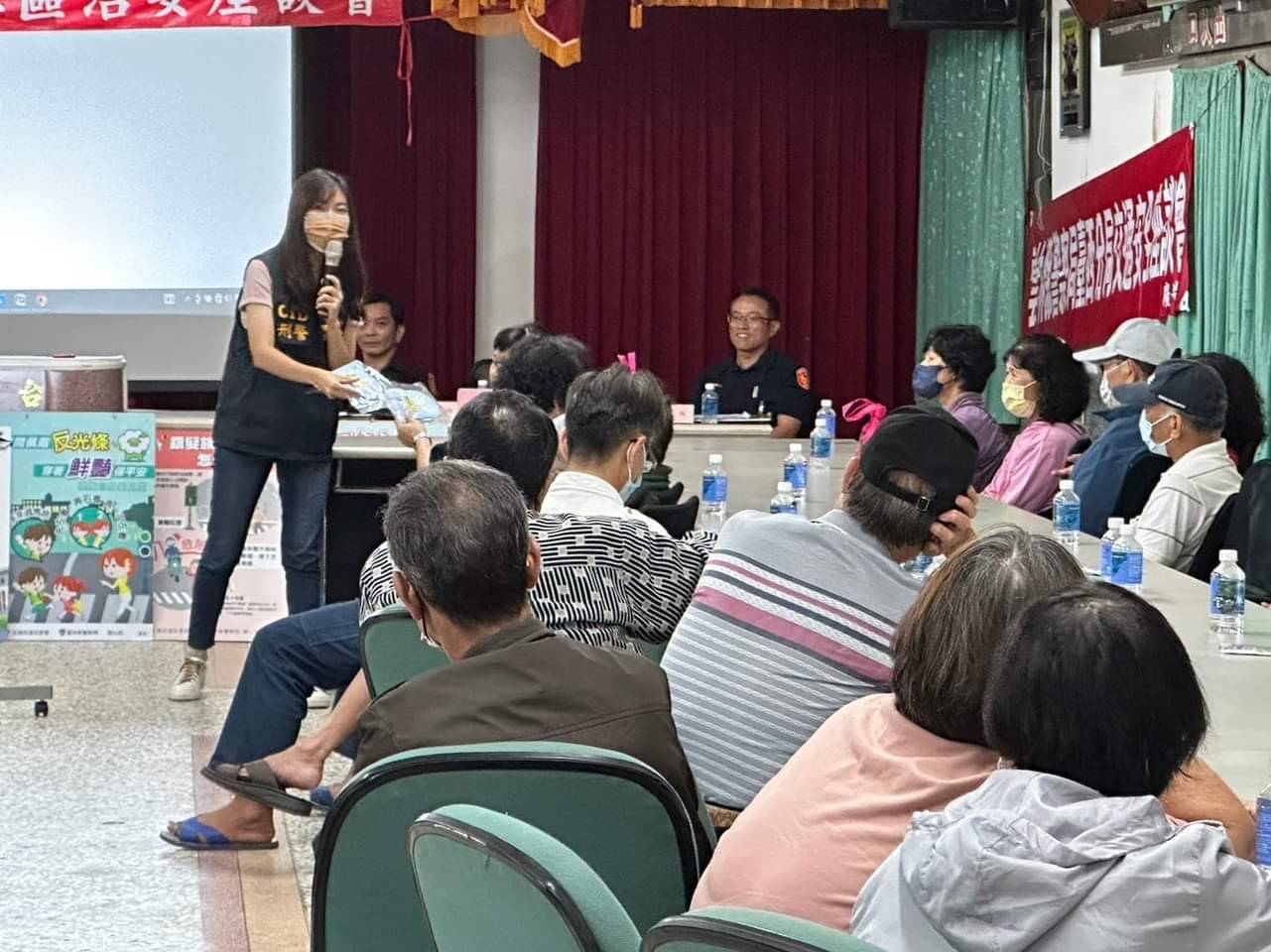 座談中除了雙向交流聽取民眾心聲,分局業務單位進行交通安全宣導、婦幼安全宣導及反詐騙宣導,加強民眾的自保能力。交通宣導時播放實際案例,以影片真實呈現加深大家的危機意識,組長黃進德表示:「戴安全帽真的很重要,騎機車遇到大型車輛要遠離,避免因內輪差及視線死角釀禍,造成傷害。」組長陳杠泉於現場宣導婦幼安全知識:「提醒孩子勿食用來路不明、已開封或離開過視線的飲料,不飲酒、不吸菸、不碰毒;避免邊走邊打電話或滑手機,盡量走騎樓,或靠左步行,以利看清來車;返家時及早取出住家鑰匙備用,注意有無可疑人物跟蹤,避免給歹徒可乘之機。」