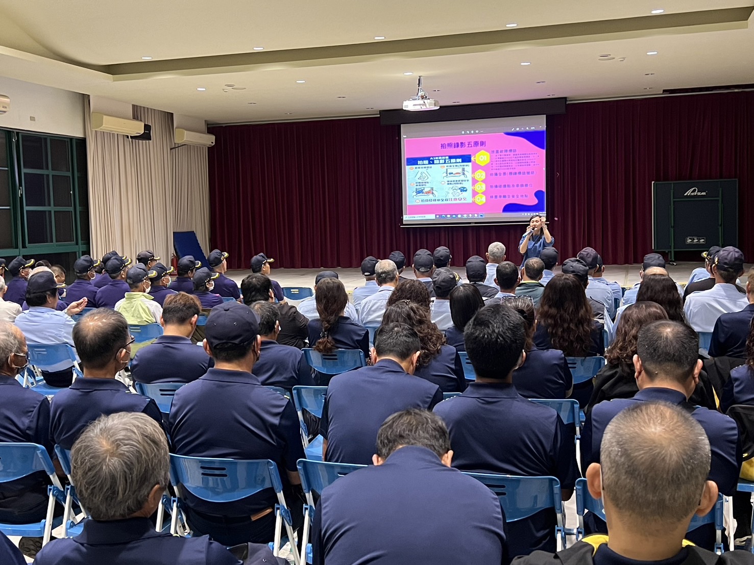 首先所有隊員集結在分局的四樓禮堂,第一堂課由分局長林俊廷率偵查隊同仁,為響應政府推動「打詐1.5方案」,宣導識詐、阻詐的重要性,同時宣傳詐騙集團利用通訊科技及網路便利性,衍生各式詐騙手法,以話術找尋潛在被害人下手,平常一定要隨時提高驚覺,學習識別和辨別犯罪行為,不輕信陌生訊息,有任何疑慮都可以撥打反詐騙專線165或撥打110報案電話查證!希冀隊員返家後多藉由茶餘飯後的機會,分享反詐騙知識給鄰居朋友知悉,希望不再有民眾遭受詐騙。第二堂課,交通組警員黃堅婷針對近期轄內發生A1、A2交通事故提出說明及肇因分析,強化參訓人員安全駕駛觀念,並由參訓人員將此觀念宣導親朋好友知悉,期能有效降低交通事故發生。第三堂課,由分局家防官莊瀧輝帶來防止家庭暴力性侵兒虐課程,呼籲所有隊員勿忽視身旁周遭的家庭問題,現今法令規範已非常完備,面對有家庭暴力問題應秉持零容忍,選擇正確的方式解決問題。此次訓練課程除兼具多元、實務的課程,並宣導遇有防空警報發布時,謹記自家住宅或鄰近的地下室就是避難處所。
