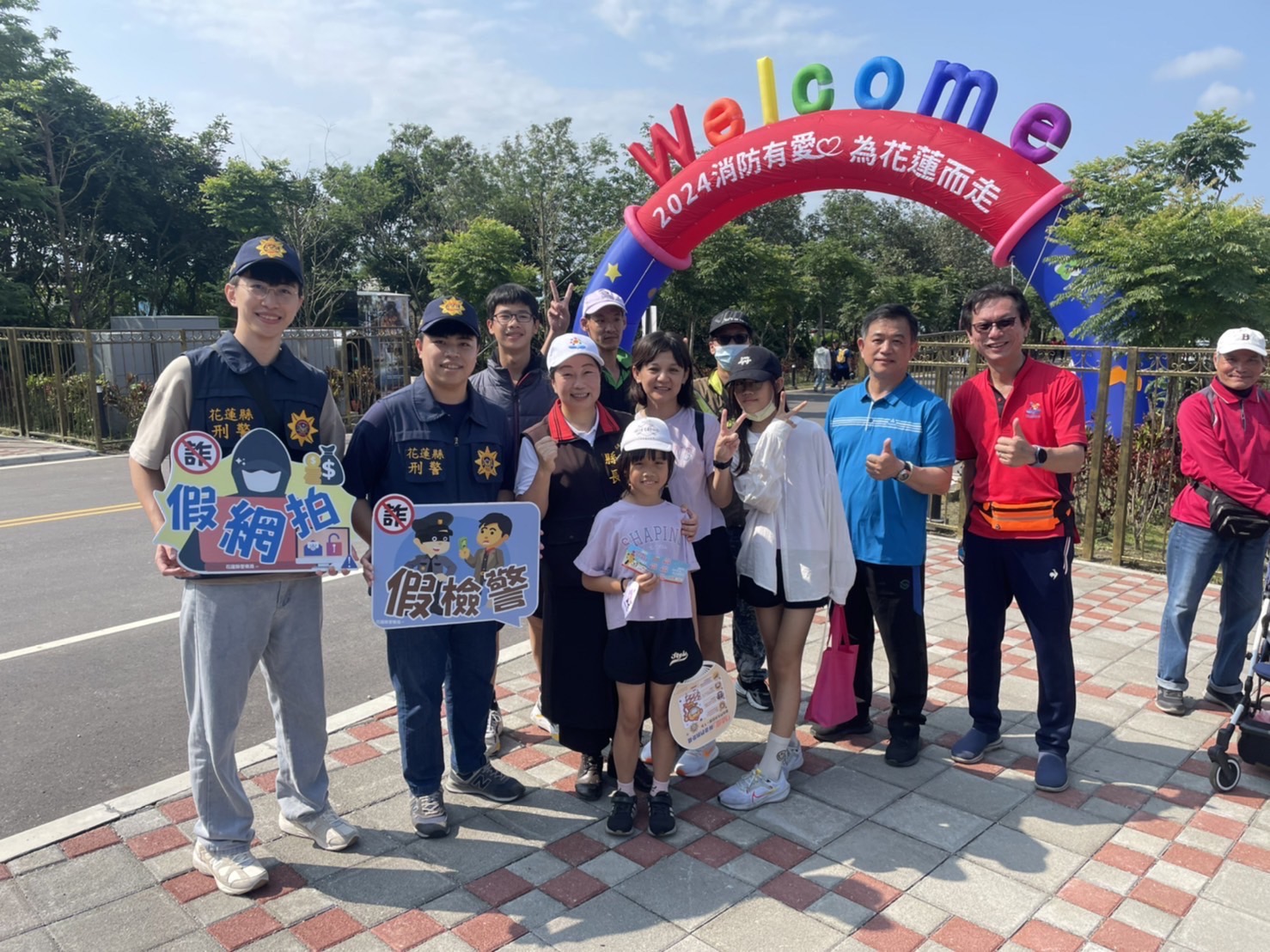 活動現場氣氛熱烈,花蓮分局也積極參與此次活動,特別設立攤位進行反詐騙宣導,提高民眾對於詐騙案件的警覺性及宣導新型詐騙手法,以提高全民反詐意識。