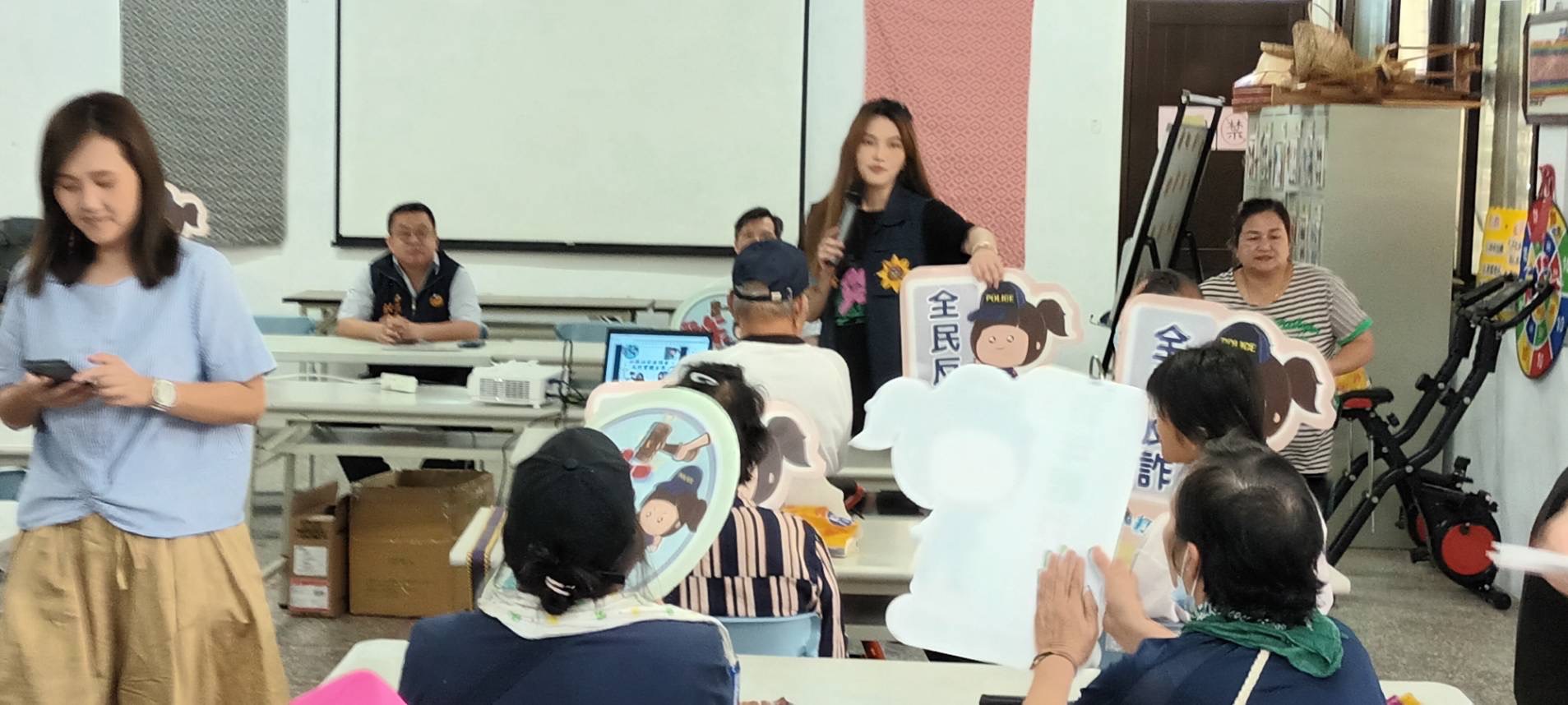 偵查隊於會中提醒民眾,去(112)年全國詐騙案逾3萬7千件,遭詐騙金額高達80億元,並舉常見新型態之詐騙案,如假投資、假網拍、AI變臉及假檢警詐騙等,宣導民眾務必謹慎小心、慎防遭詐騙;交通組則播放轄內重大交通事故宣導影片,提醒民眾務必遵守交通規則,冀使民眾印象深刻,達到宣教效果。此外,家防官針對最近經常登上媒體版面的兒虐案、數位性暴力及跟蹤騷擾等案例宣導說明,讓村民瞭解新型態之犯罪及法律規範。
