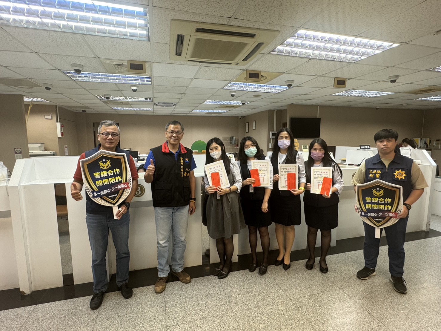 花蓮警察分局分局長黃壬鍵在5月21日下午,率領花蓮分局偵查隊隊長謝宗基及同仁前往臺灣銀行花蓮分行及國泰世華銀行花蓮分行,親自頒贈感謝狀及麥當勞禮券,以感謝阻詐有功的行員們在日前發現民眾有可疑的提匯款交易時,及時通報警方並積極協助調查,成功阻攔詐騙案件的發生,守護民眾的財產安全。
