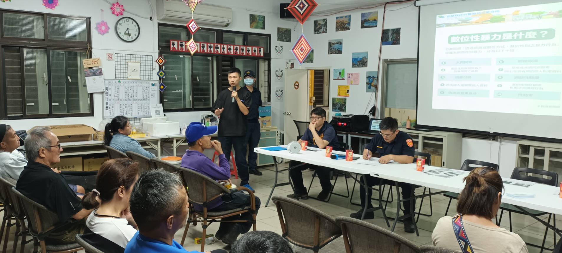 會中先由所長報告轄內治安及交通狀況,並感謝居民在農忙一整天,晚上還能踴躍參加會議,共同關心轄內警政相關議題;接續分局交通組播放轄內重大交通事故宣導影片,提醒民眾在行經無號誌路口,務必要減速慢行,並遵守停、讓等規定,以保障自身及他人的生命安全。偵查隊舉常發生之實際案例宣導反詐騙,包括假投資、假網拍、AI變臉及假檢警詐騙等,以提醒民眾避免遭詐騙。保安組則向民眾宣導如何查詢防空避難位置及避難相關知識。此外,家防官報告有關數位性暴力及跟蹤騷擾案件,讓村民了解相關新修的法律規範,並提高防範意識。