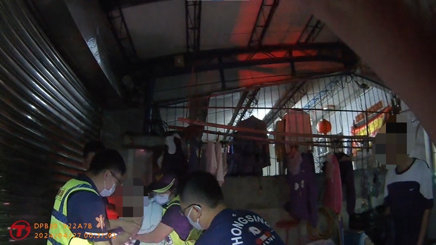 據了解,員警獲報抵達現場後,發現大門深鎖無法進入救援,遂通知消防人員攜帶破壞工具到場,同時向熱心鄰居借用木梯,爬上木梯透過門縫觀察老翁身體狀況,發現老翁上半身赤裸、癱坐在地無法動彈,身旁的水龍頭不斷噴出大量自來水濺濕老翁全身,處理員警試圖拿長棍伸進屋內欲敲開門鎖未果,經消防人員到場攜破壞剪剪破鐵條從上方門縫爬入後,發現陳姓老翁體力透支有輕微失溫情況,老翁自稱欲半夜洗衣服,因體力不支頭暈跌倒,並將一旁水龍頭一併撞破,導致家中地板積水成災,其患有重聽妻子當時正在樓上休息,未聽到家中來電鈴響、敲門、門鈴聲及老翁呼救聲,幸賴副所長賴水瞬及警員傅永宏偕同消防隊前來破門,老翁才有驚無險地躲過此次危機,並對於警消人員的救援表示感激之心。