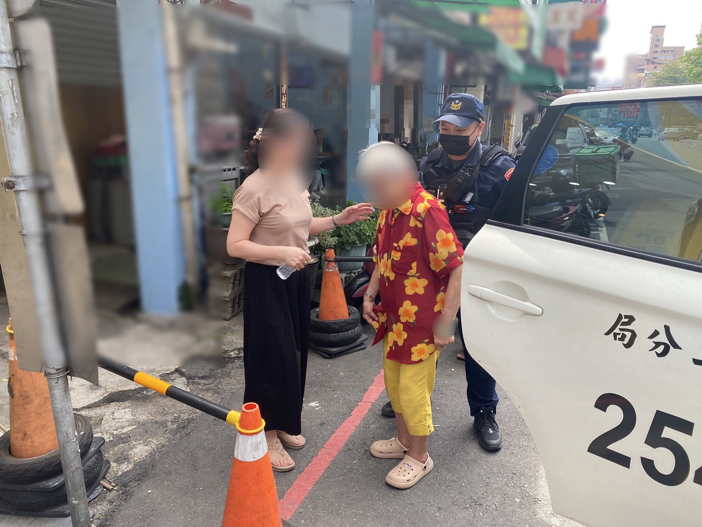 員警到達現場時,見一名老婦人坐在人行道椅子上,旁邊卻站了一名女子,一問之下,才知道旁邊女子為婦人之林姓媳婦,林女告知員警,因婆婆患有失智症,今日告知家人要外出走走,林女擔心婆婆安危,一路跟在婆婆後面,直到見婆婆體力不支坐在人行道椅子上休息,上前要帶婆婆返家,婆婆卻忘記媳婦,將她誤以為是壞人,不願跟她返家,媳婦迫於無奈只好求助員警,員警耐心勸說老婦人「天氣太熱、載她回家休息」,老婦人一度不願,見當天日頭大,擔心年邁老人身體狀況,故協助載送老婦人返家休息,家屬頻向員警表達感謝之意。