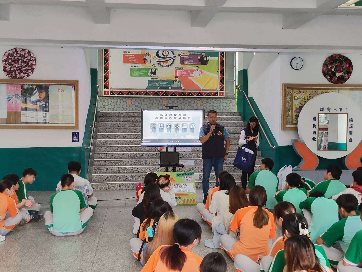 近年來,犯罪集團藉機利用民眾求職需求,針對求職者以受他人托運行李物品或誆稱高薪職缺誘騙民眾出國進行運輸毒品從事非法行為,且犯罪集團亦利用青少年從事犯罪規避刑責。時值鳳凰花開畢業季,花蓮縣警察局刑警大隊於日前聯合少年隊、政風室等單位,配合「上騰工商」針對高三畢業生舉辦一系列生涯規劃、順利進入職場之講座,預防宣導團除宣講外,也播放新拍攝的宣導影片,提醒即將踏入社會、成為社會新鮮人的畢業生,求職工作陷阱多,謹慎提防不可少,讓未來將進入職場的畢業生,免於成為詐騙集團口中的肥羊;看完影片,與會的陳同學表示:「感謝警察叔叔提醒,將來求職時會更加謹慎、小心!」。
