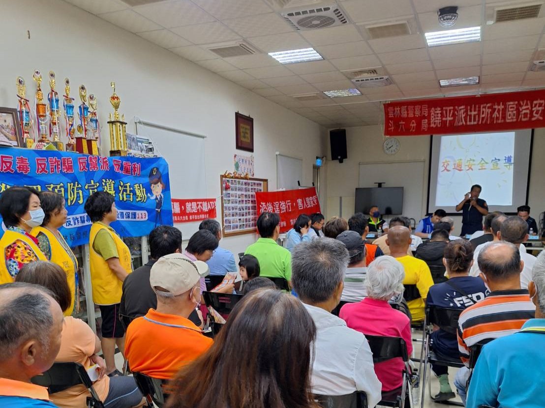 雲林縣警察局斗六分局為加強轄內村民與員警橫向聯繫,與居民直接溝通交流,並聽取民眾對治安之期許與建言,積極於轄內各鄉鎮社區內舉行治安座談會,日前於莿桐鄉興貴村添旺園樂齡活動中心舉辦社區治安座談會,並邀請議員、代表、村長及社區村民約80餘人與會,現場並接受民眾提問,讓警方能進一步暸解民眾的需求,展現斗六分局維護治安的決心。