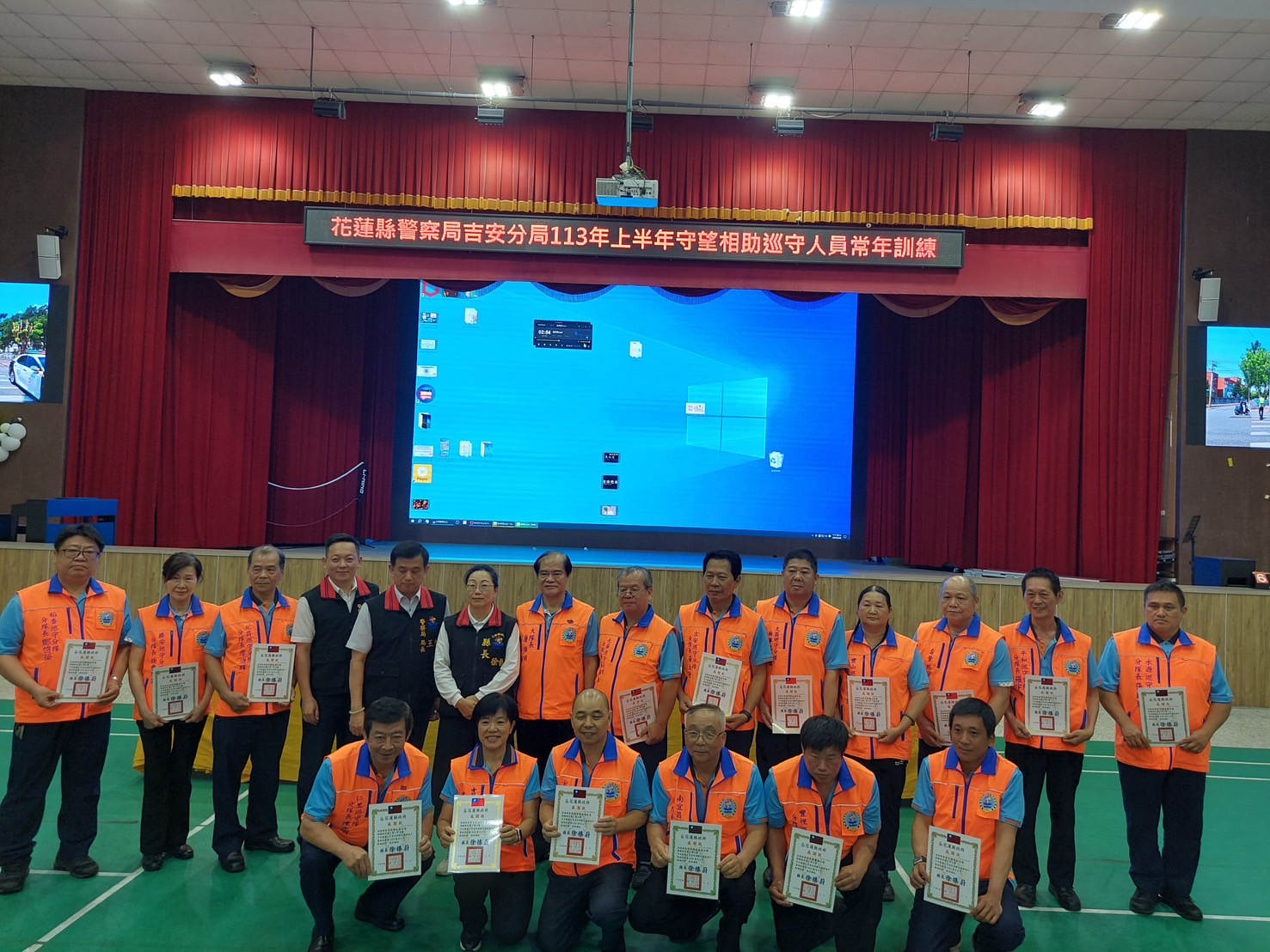 花蓮縣警察局吉安分局於5月28日晚間,在宜昌國小活動中心辦理「113年上半年守望相助巡守人員常年訓練」,吉安鄉各巡守隊齊聚一堂,共同交流與分享社區治安、友善通報及災害防救等工作經驗。