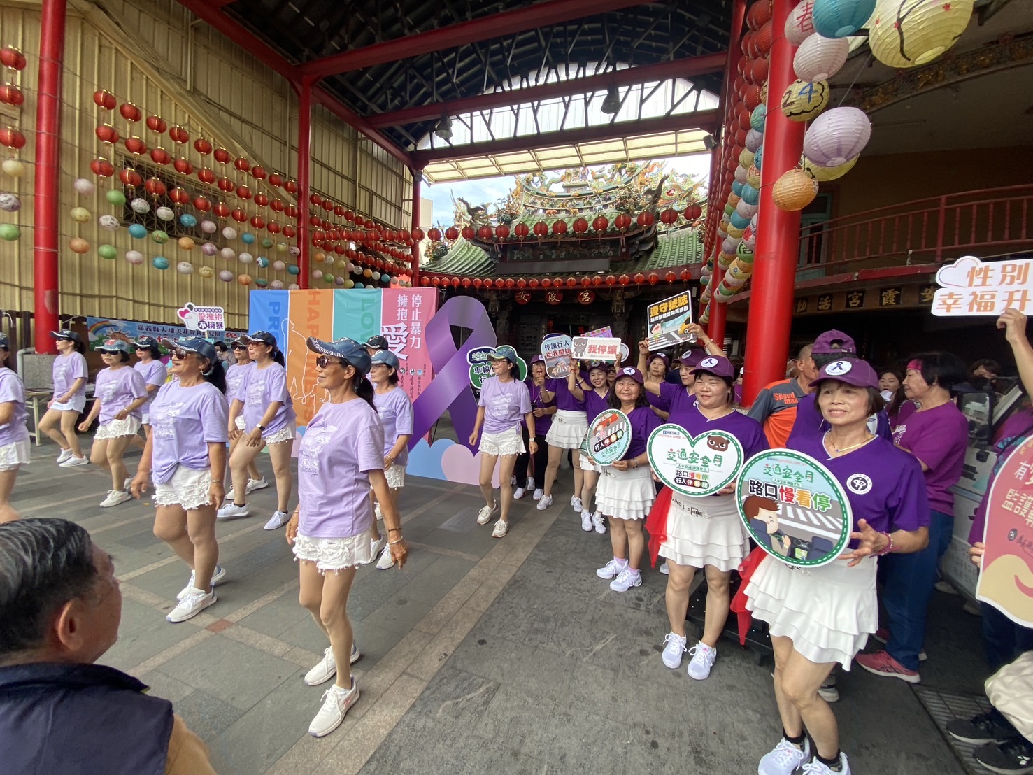 民雄警分局為維護活動過程交通安全、順暢,特別規劃勤務於宣導活動踩街沿線各路口協助交通指揮管制。活動過程中同時加強針對「路口慢看停,行人停看聽」、「路口停讓行人先行」、「婦幼安全」觀念及反毒、反詐騙宣導,希望用路人均能快樂出門,平安回家,以及避免受騙。