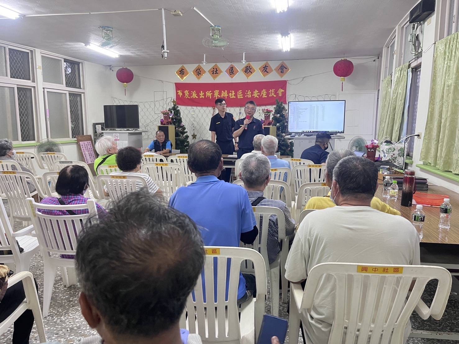 會中,所長及偵查隊長皆針對近期常發生之詐騙案件向鄉親宣導,呼籲村民們不要隨意相信陌生訊息及相關投資內容;交通組組長林弘哲亦針對近期所發生較嚴重且民眾較易忽視的交通事故宣導交通安全規則,十字路口謹記「停、看、聽」等要訣防止交通事故發生,祈望鄉親們快樂出門,平安回家。