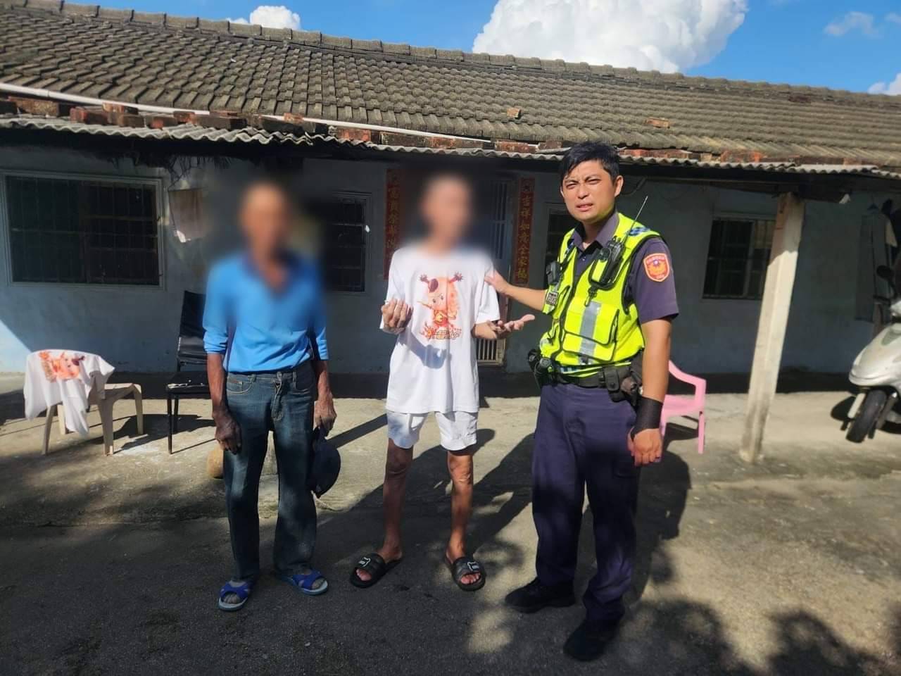 員警看他穿著居家服,聽力有障礙又看不清楚,研判應是住在附近,以市區為中心點開始尋找家人。警車沿著街道行駛逢人就問:「請問有人認識他嗎?」住在市場旁的店家告知:「他住在前面巷子右轉進去!」警車來到民宅前,心急如焚的家屬看他安然無恙,終於放下心中大石向員警道謝:「還好遇到警察,萬一發生危險就糟了。」哥哥表示,弟弟視障平時會到附近採買生活物資,這次外出購物未回家吃午餐,天熱炎熱讓家屬相當擔心:「感謝警察載我弟弟回家,讓他能平安,真的很感謝!」