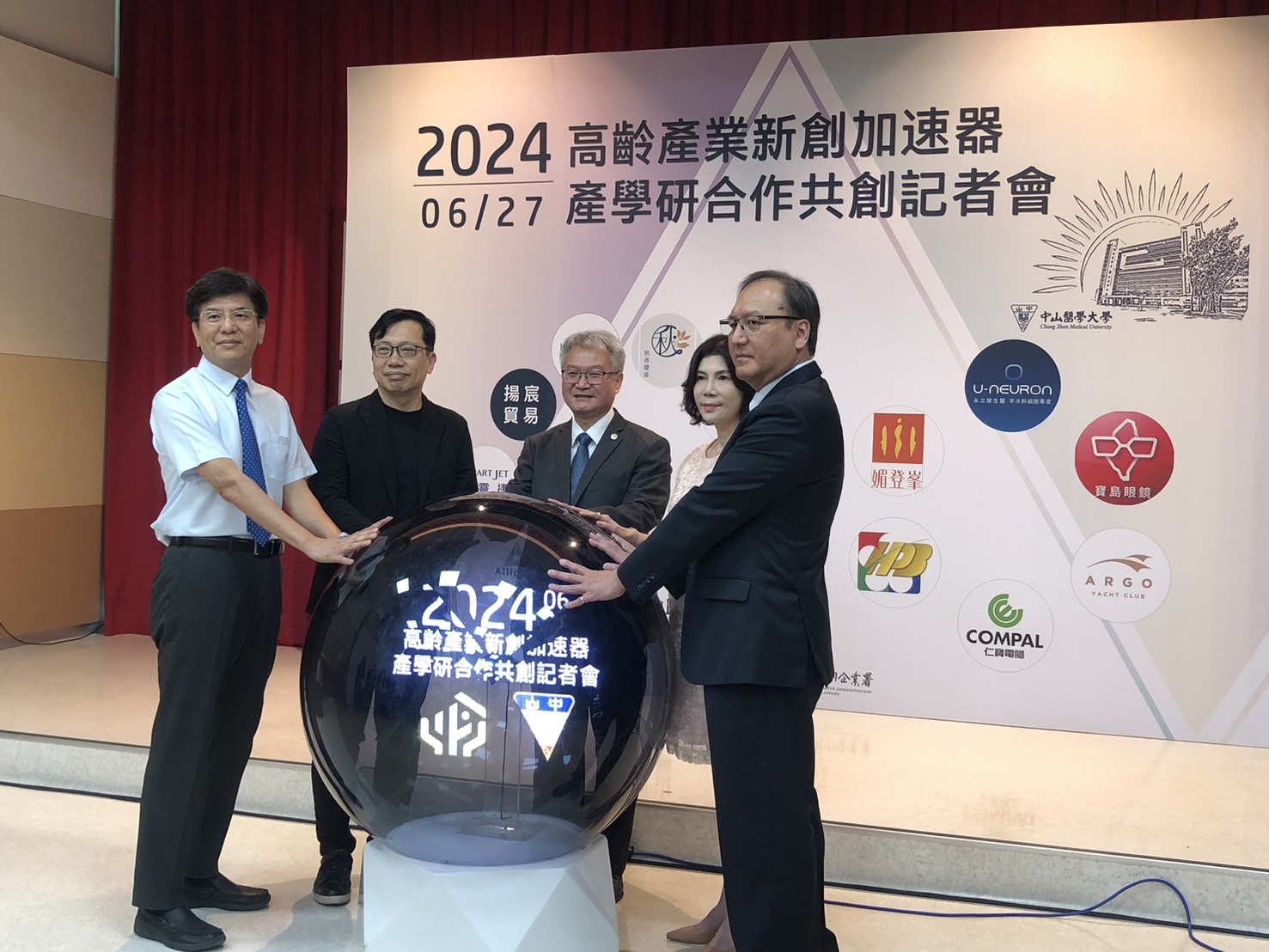 中山醫學大學(以下簡稱中山醫大)為113年中部唯一取得經濟部中小及新創企業署「高齡產業新創加速器計畫」的醫學大學,今(27)日發布與永立榮生醫、媚登峰集團、寶島光學、仁寶電腦工業、合盈光電科技和亞果遊艇,共同簽署產學研合作共創MOU(合作意願書),攜手為新創產業打造最佳的孵育機制。