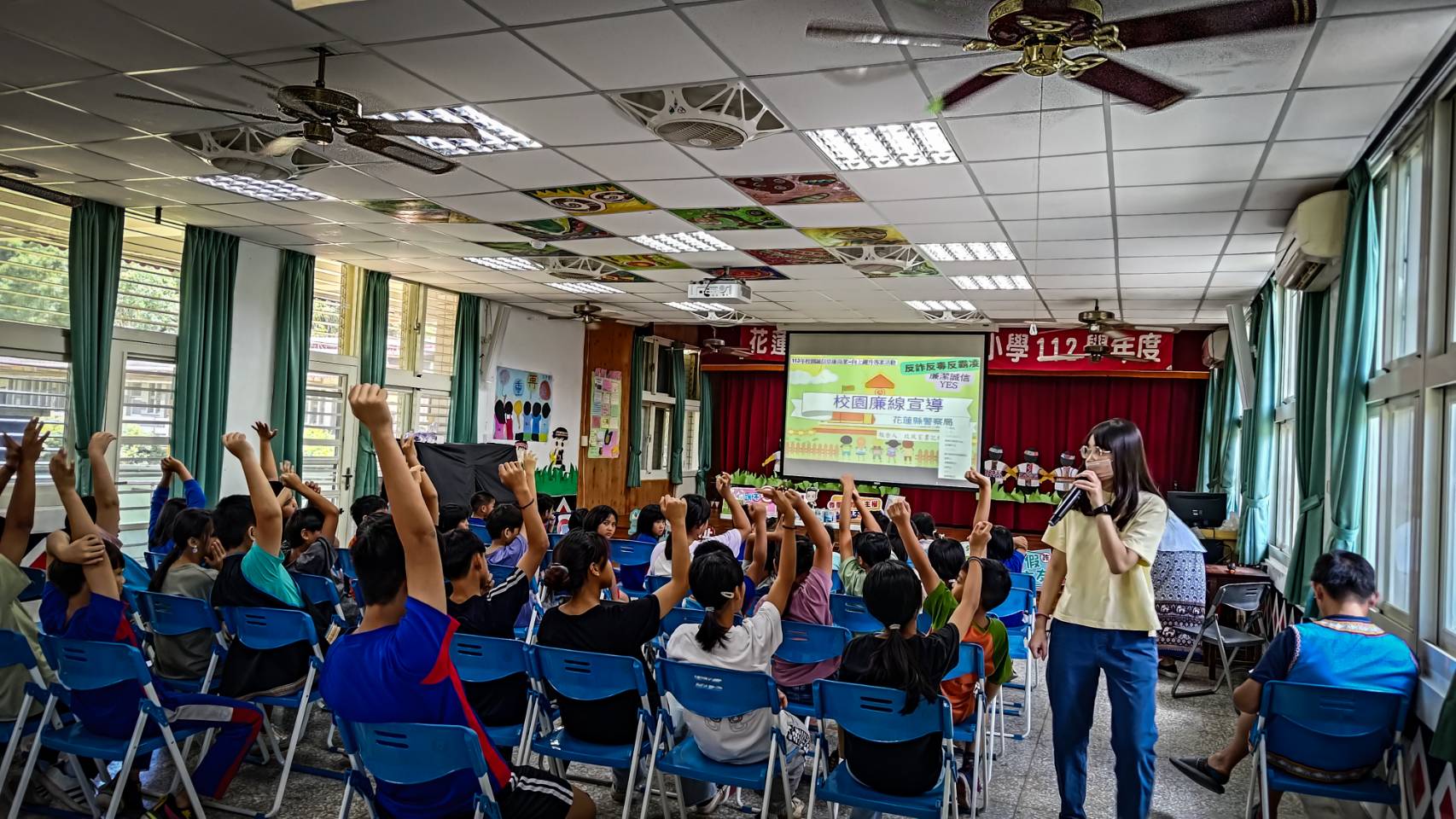 青少年學生朋友們,最期待的暑假即將開始,本縣警察局婦幼警察隊及政風室特別在暑假前夕,針對縣內各學校展開一系列宣導活動,本月28日特別前往南區太平國小、立山國小辦理宣導,獲得小朋友的熱烈迴響,為了讓偏遠地區的小朋友了解網路上常見誘騙拍攝裸露私密照片、影像的犯罪手法、性騷擾預防及廉政議題,才特別安排本次南區校園宣導活動。