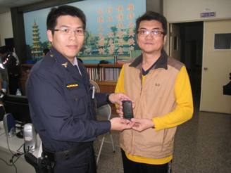 左營警分局新莊所警員警員吳俊宏於執行備勤勤務時,一位熱心民眾拾得一支品牌夏普之紫色手機,該熱心民眾表示其係於天祥二路靠近公園旁所拾獲,吳員判斷該手機可能係下午至公園運動散步之民眾所掉落,加上該手機尚未掛失斷話,可能失主還不知手機遺失,所幸該手機並未上密碼鎖,於是吳員立即撥打該手機內之通話紀錄,順利聯絡到手機失主蔡X南。