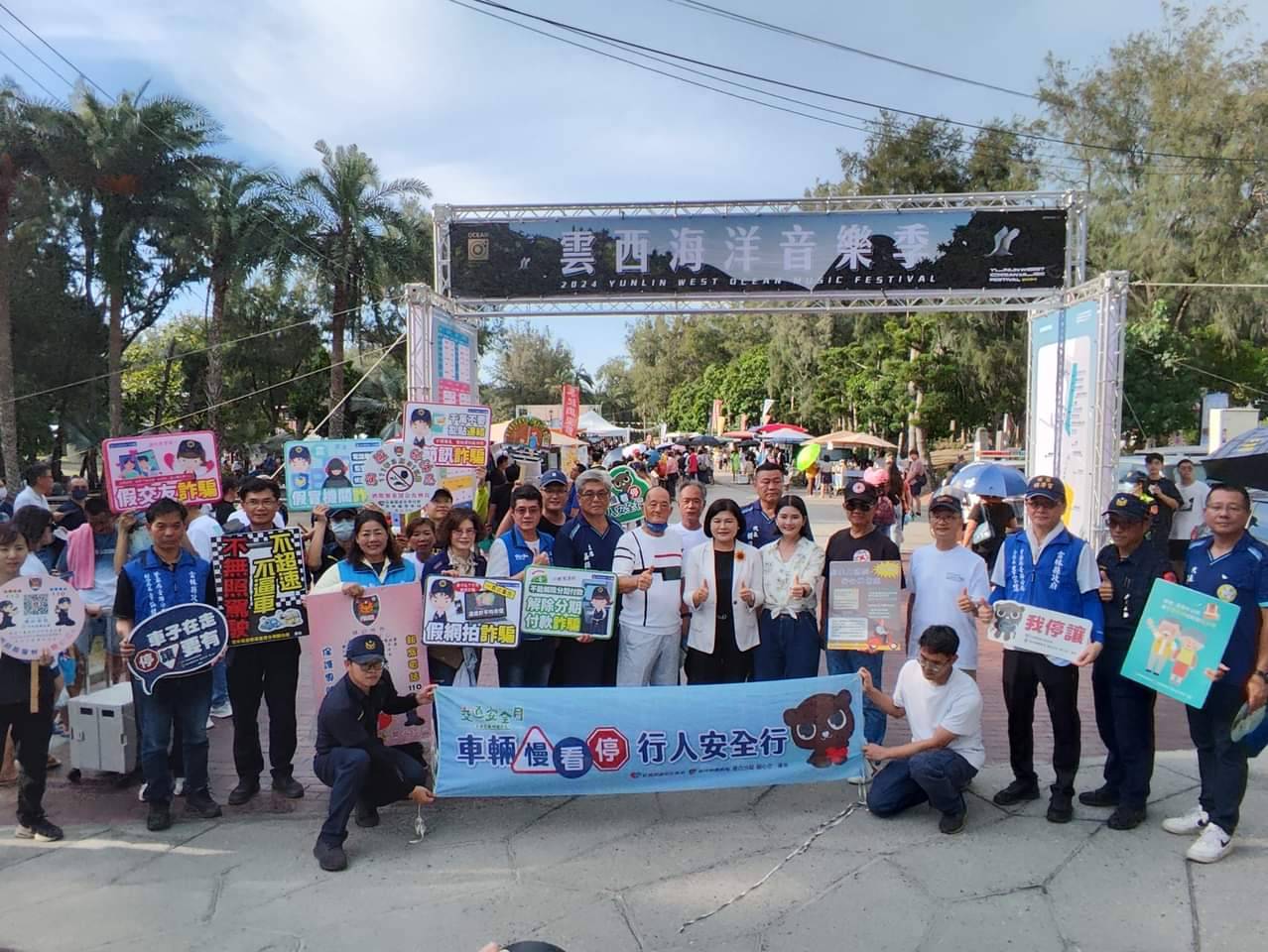 張麗善縣長與文化觀光處長陳璧君蒞臨活動會場,特別與臺西分局員警一起進行交通安全、婦幼安全及青春專案反毒、反詐騙宣導,呼籲民眾要有「安全駕駛」觀念,注意速限不超速,友善駕駛不逼車,持有駕照再騎(開)車,張麗善縣長與臺西分局員警於現場賣力宣傳雲林縣政府加碼機車駕訓補助費用方案「騎車上駕訓,安全不靠運」,在雲西海洋音樂盛宴的歡樂氛圍中,讓交通安全觀念深植民心。